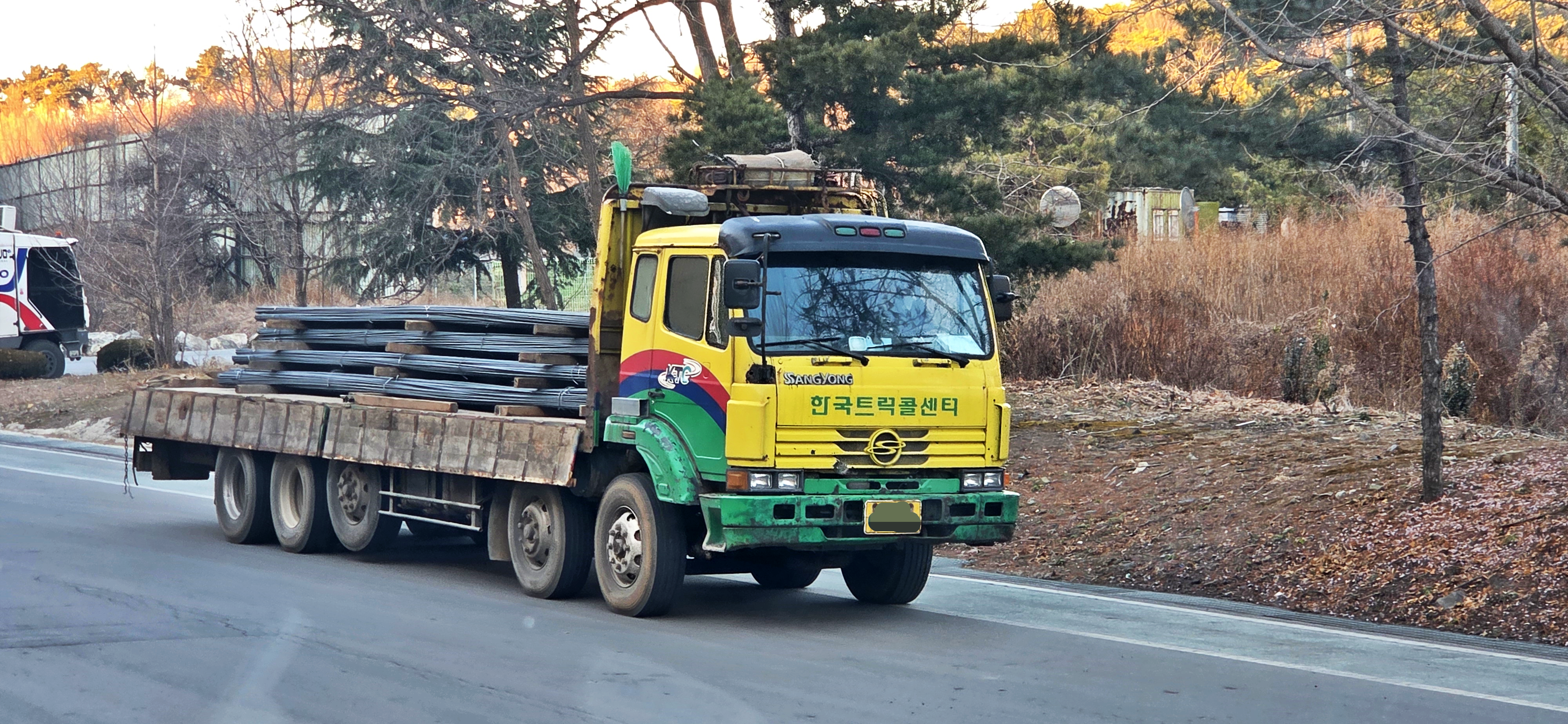 95년 5월 등록. 당시 8X4샷시의 18톤 차량으로 출고하여 중축을 달아 23톤 25톤으로 구조변경을 했던 차량입니다. 이 시절에 조향이 되는 후축을 달아 놓은 SY트럭도 가끔 도로 위에서 마주치지만, 후축이 대세인 요즘과 달리 대부분 중축에 가변축을 달았기에 가변축이 중간에 있는 이런 형태의 차량들이 익숙할 겁니다.
