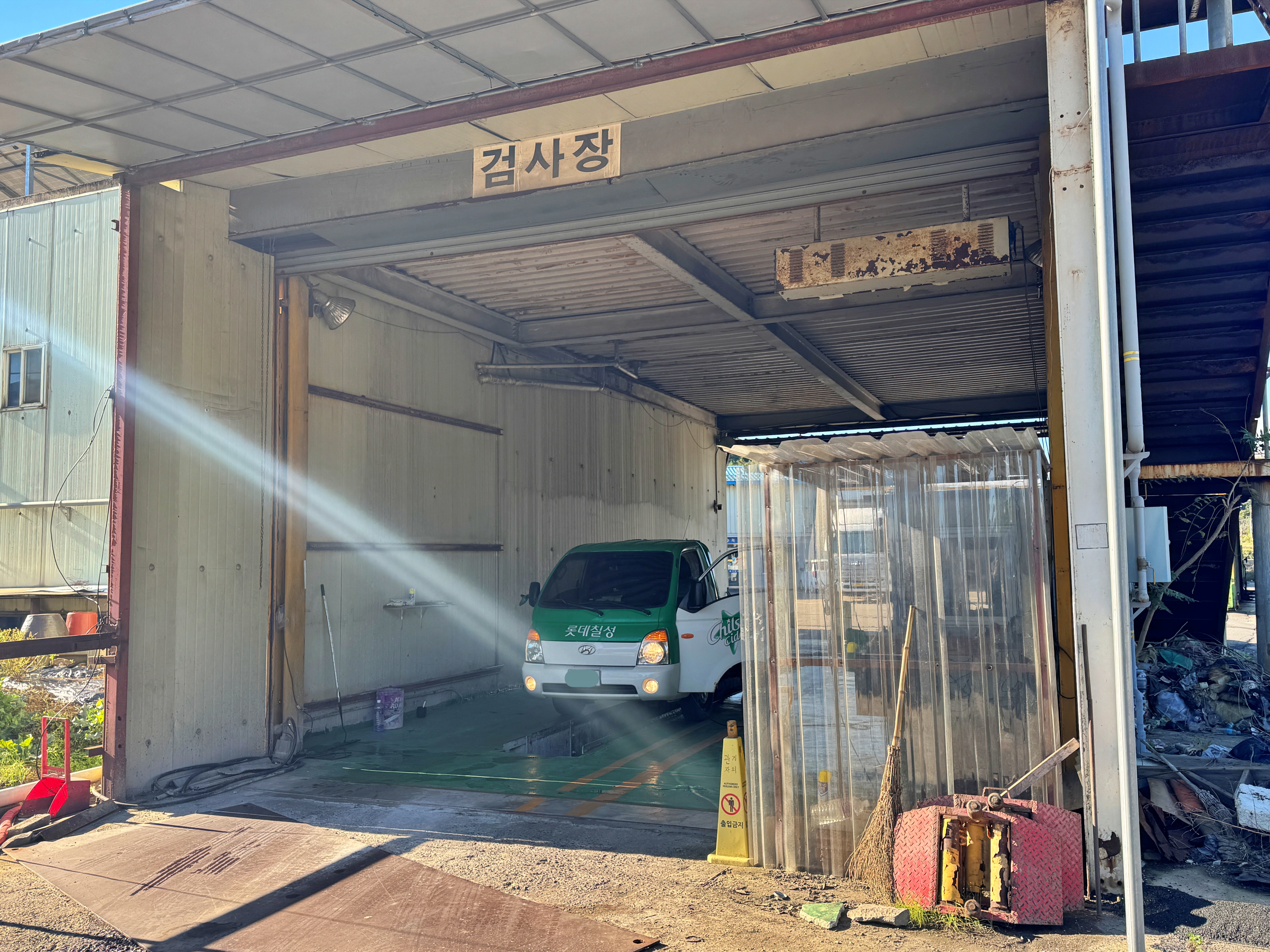 폐지수거용 차량이다 보니 편리성을 위해 합판으로 가벽을 세우고 다녔는데, 검사를 위해 가벽으로 세운 합판을 잠시 적재함 바닥에 내려놓습니다. 합판정도야 크게 무게가 나가지 않으니 적재함에 올려둬도 상관은 없습니다. 그렇게 가벽을 제거하고 대충 외곽도로에서 한 바퀴 밟아준 다음 업무시간에 맞춰 검사장으로 향합니다.