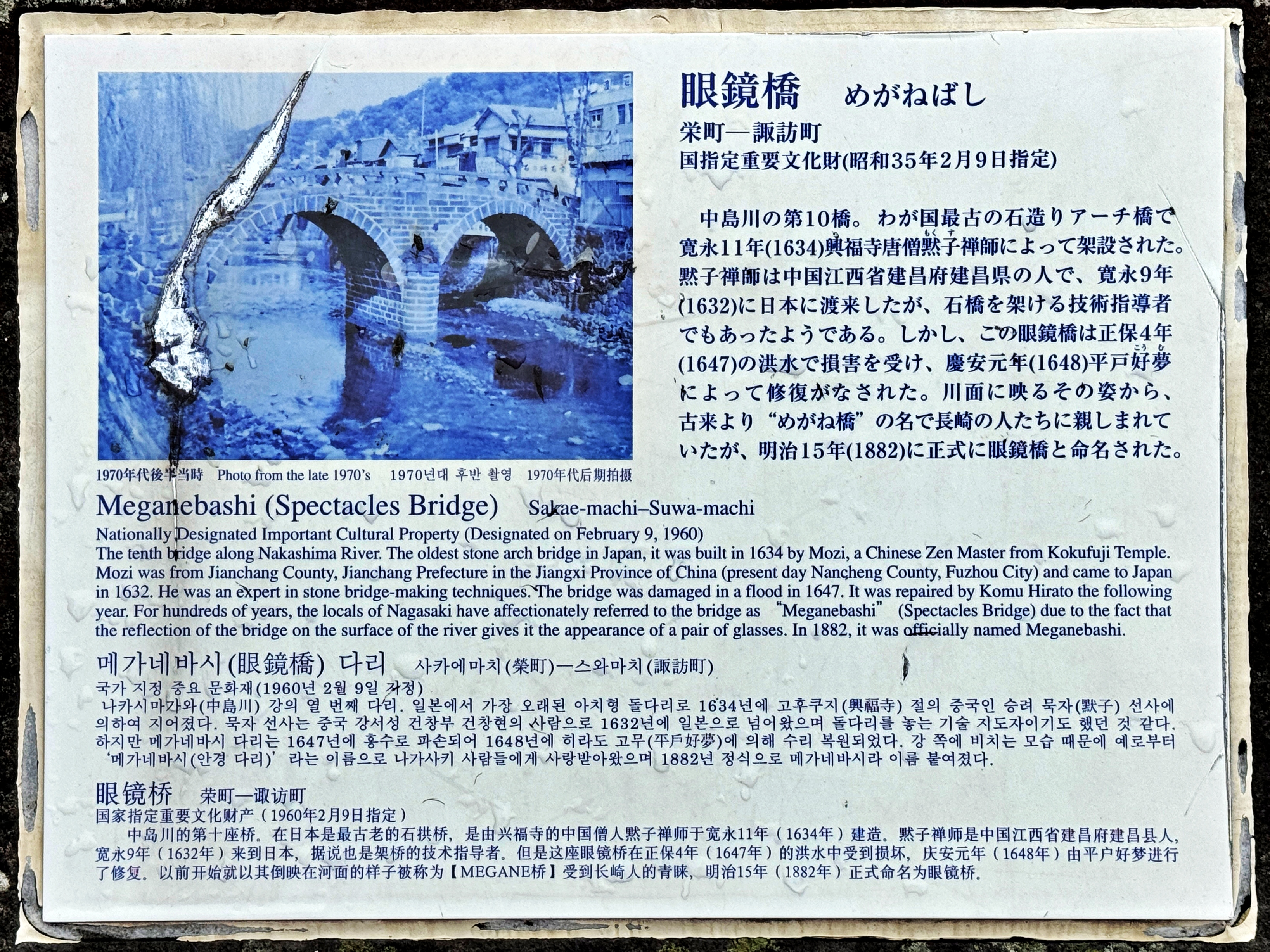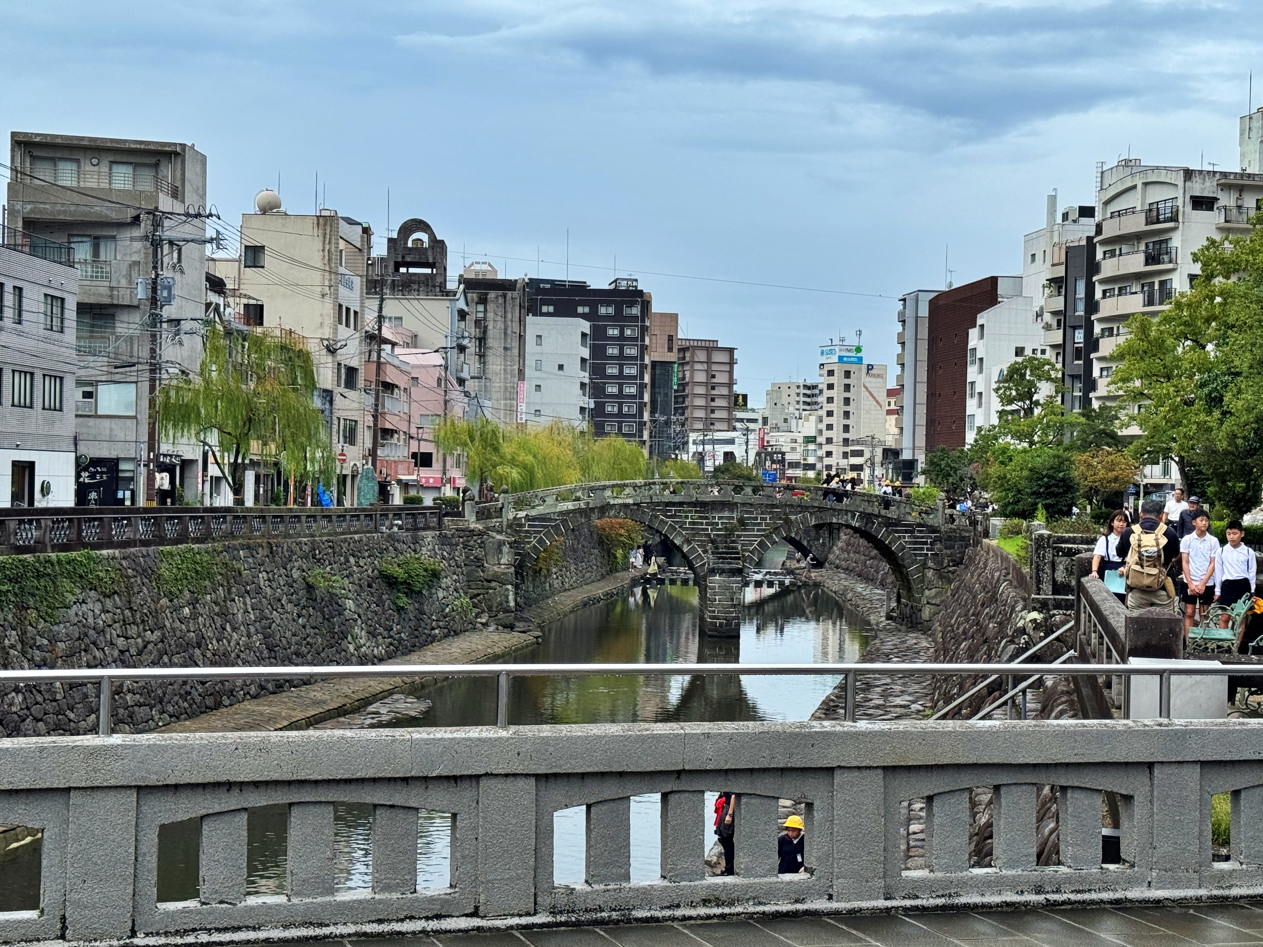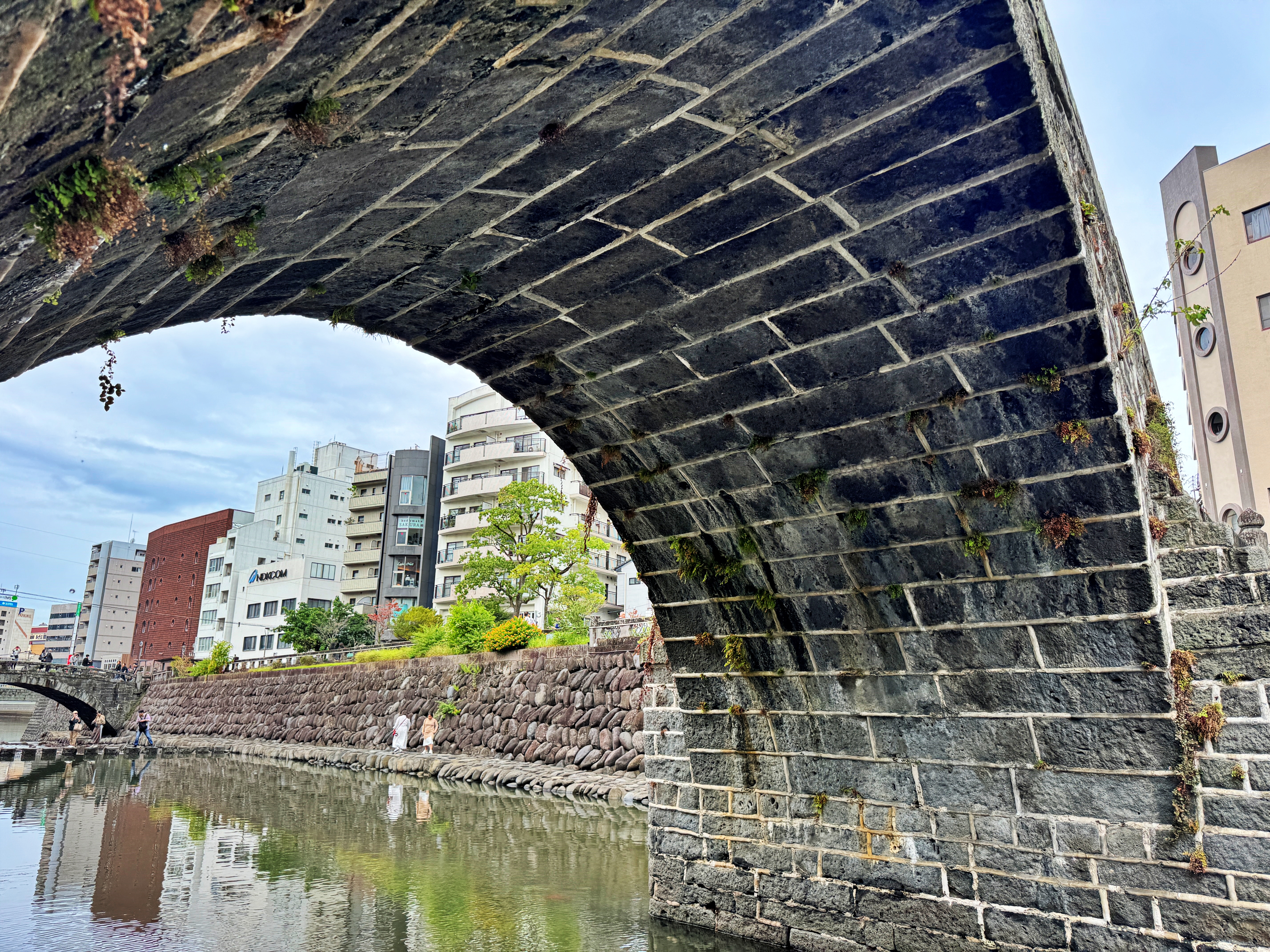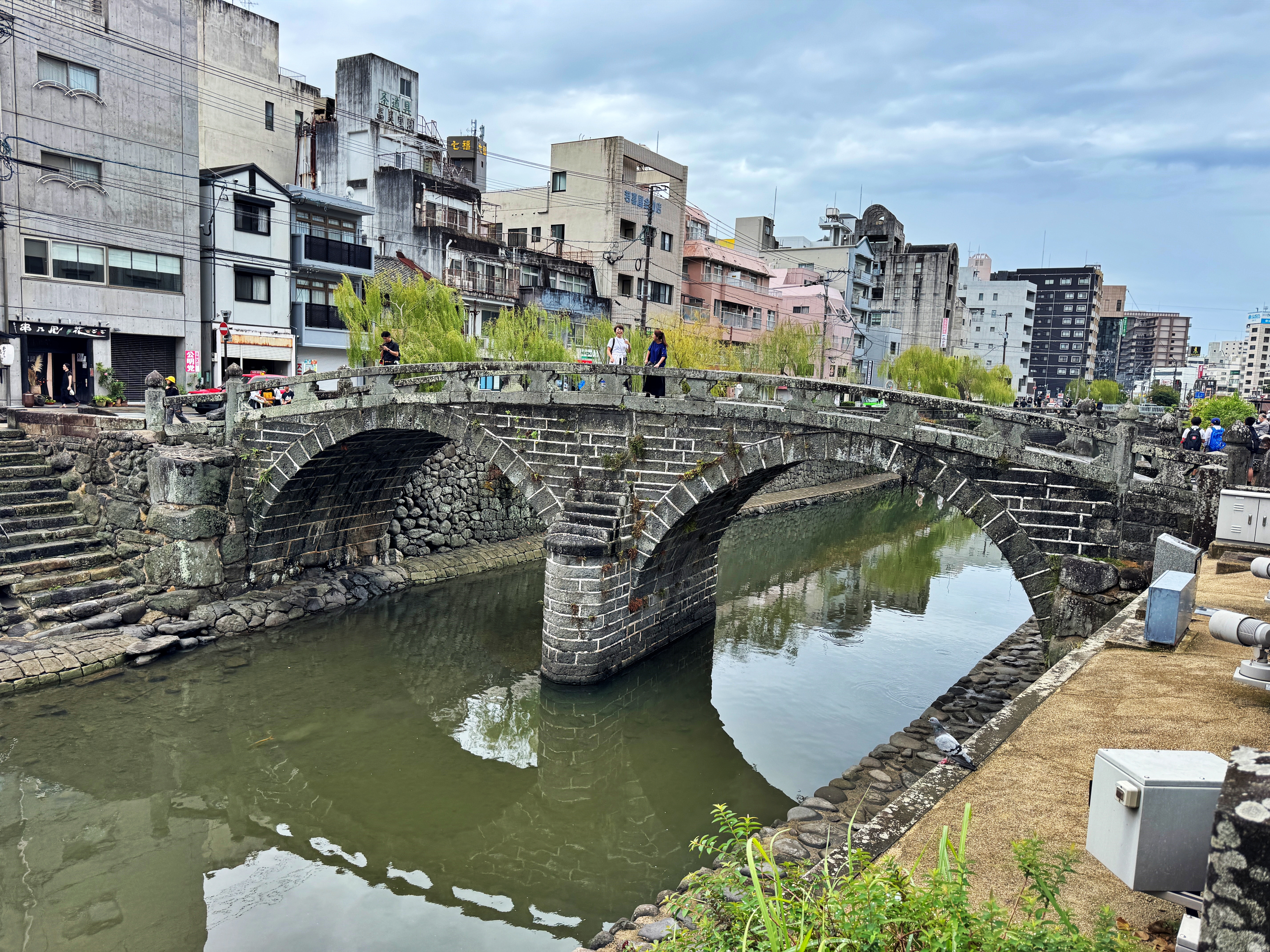 일본 최초의 아치형 다리인데 주변의 다른 다리들과 다리 2연 아치형이며, 무려 17세기에 축조되었고, 1960년에 일본 중요 문화재로 지정되었다고 하네요. 당시 이 사진을 트위터에 올리니 도호쿠 지방에 거주하시는 일본인 아저씨도 나가사키에 가보지 않았지만 저 다리는 TV에서 자주 봐서 알고 있다고 그러시더군요.