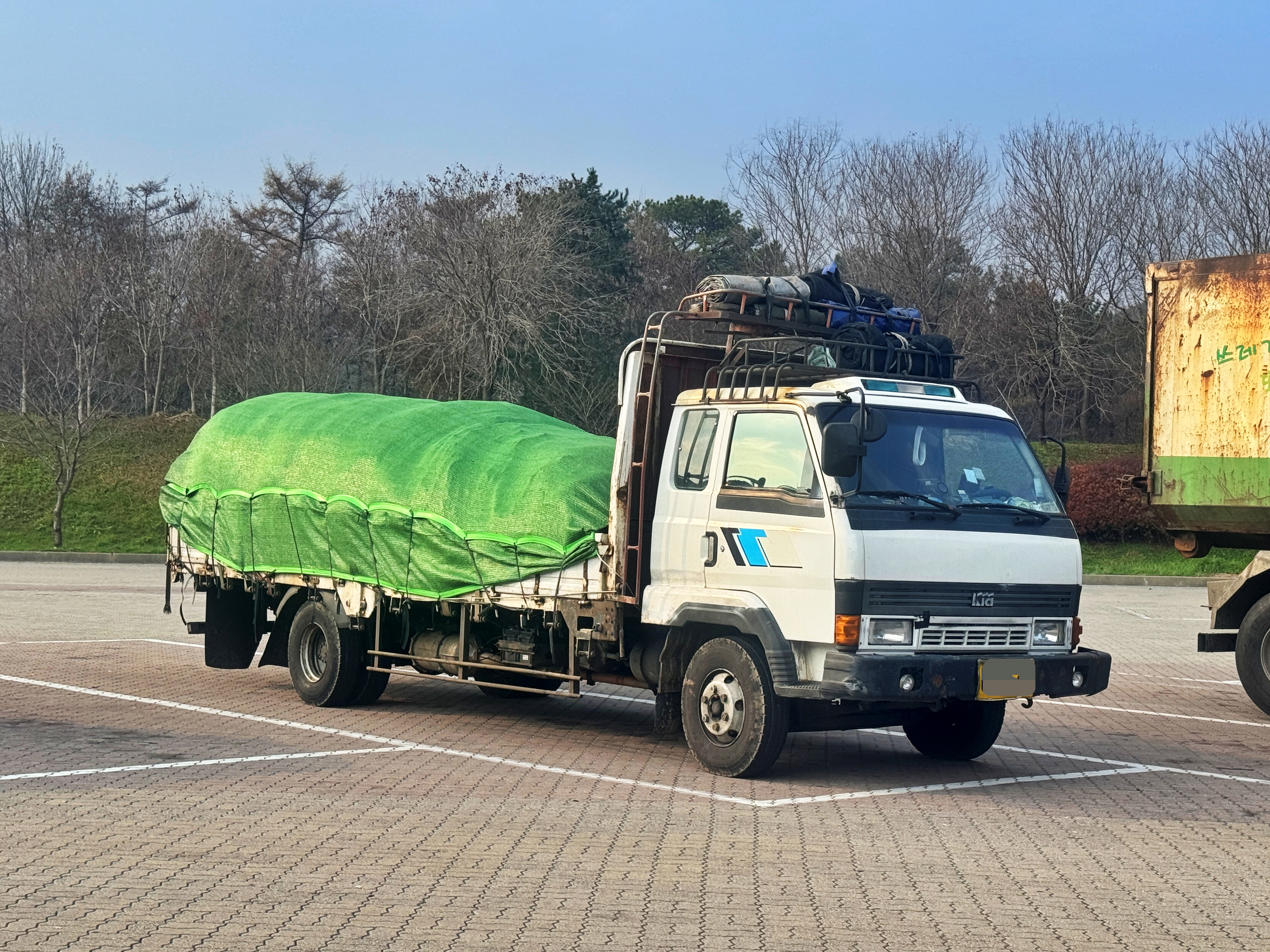 오늘의 올드카 목격담은 두 트럭을 한 번에 다뤄보려 합니다. 옛 삼성상용차에서 생산했던 6x4 형태의 카고트럭을 셀프로더로 개조하여 사용하고 있던 차량과 기아의 초기형 라이노입니다. 물론 두 차량 모두 DPF를 장착하고 현재까지 생존해 있으며, 삼성트럭은 자가용 번호판을 달고 있었고, 라이노는 세월이 무색하게 현재까지 영업용 번호판을 부착하고 현역으로 달리고 있었습니다.