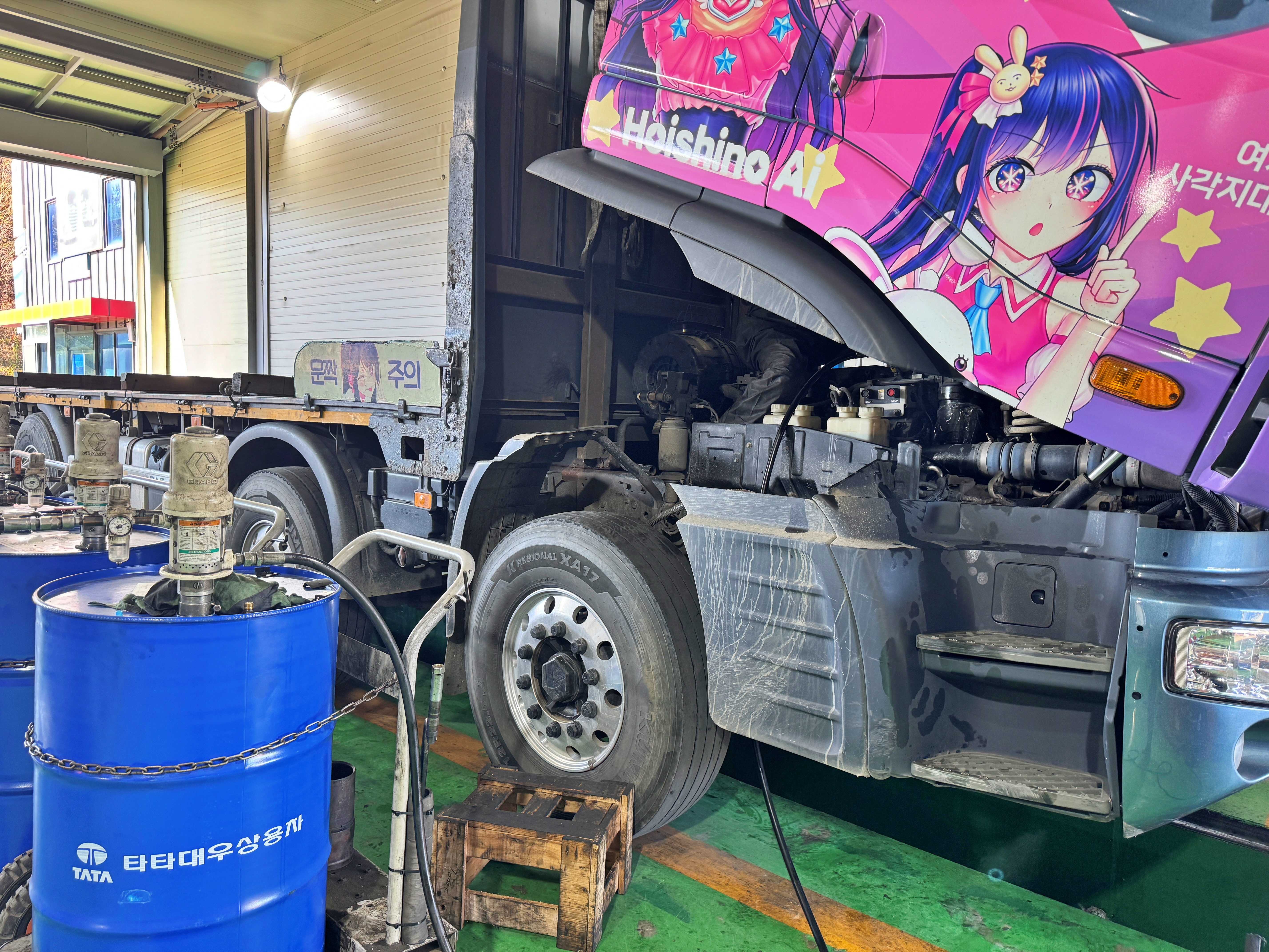 부속값도 그리 비싸지 않고요. 퍼지탱크 역시 상대적으로 접근하기 쉬운 곳에 장착되어 있어 탈부착도 어렵지 않습니다. 애초에 타타대우 정비소도 가깝고 이전부터 용접부위가 갈라지며 에어가 누기 되기 시작하는 순간에 와서 교체했던지라 퍼지탱크가 마치 박 터트리기의 박처럼 두 동강 난 모습은 본 적이 없지만, 다른 차들은 사실상 에어가 차지 않는 수준까지 가서 정비소에 들어오는 경우도 왕왕 있다고 그러더군요.