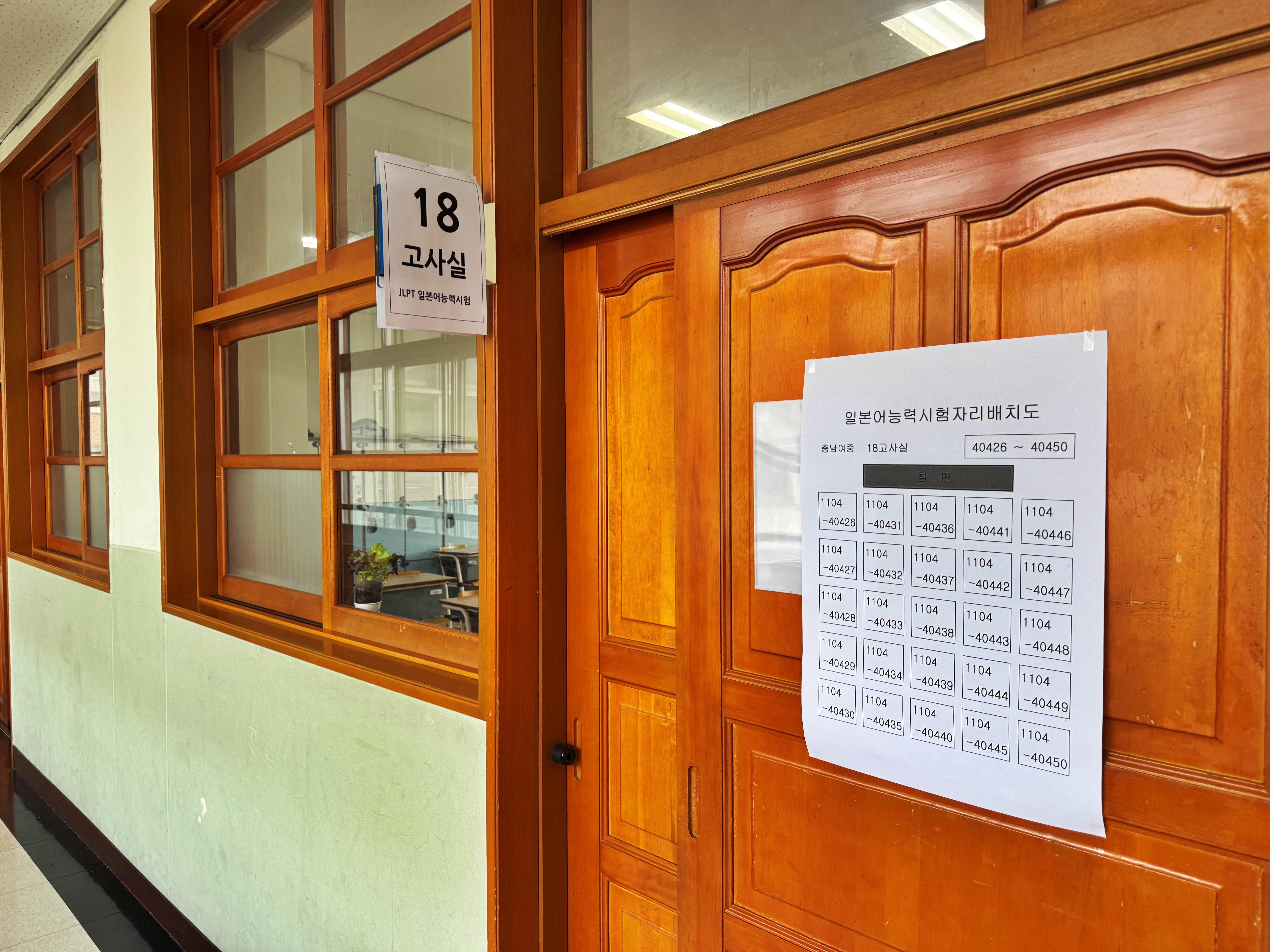 이번 2024년 2회 차 JLPT의 경우 대전지역은 한 학교에서 한 레벨의 시험만 진행되었습니다. 그러니 동시에 끝나고 동시에 우르르 몰려나오겠죠. 총 25개의 고사실에 100% 접수율을 보여 625명의 수험생이 배정되었습니다. 다만 막상 제가 들어간 고사실만 봐도 정원 25명 중 16명이 고사실에 들어왔습니다. 허수가 상당히 많다는 이야기겠죠.
