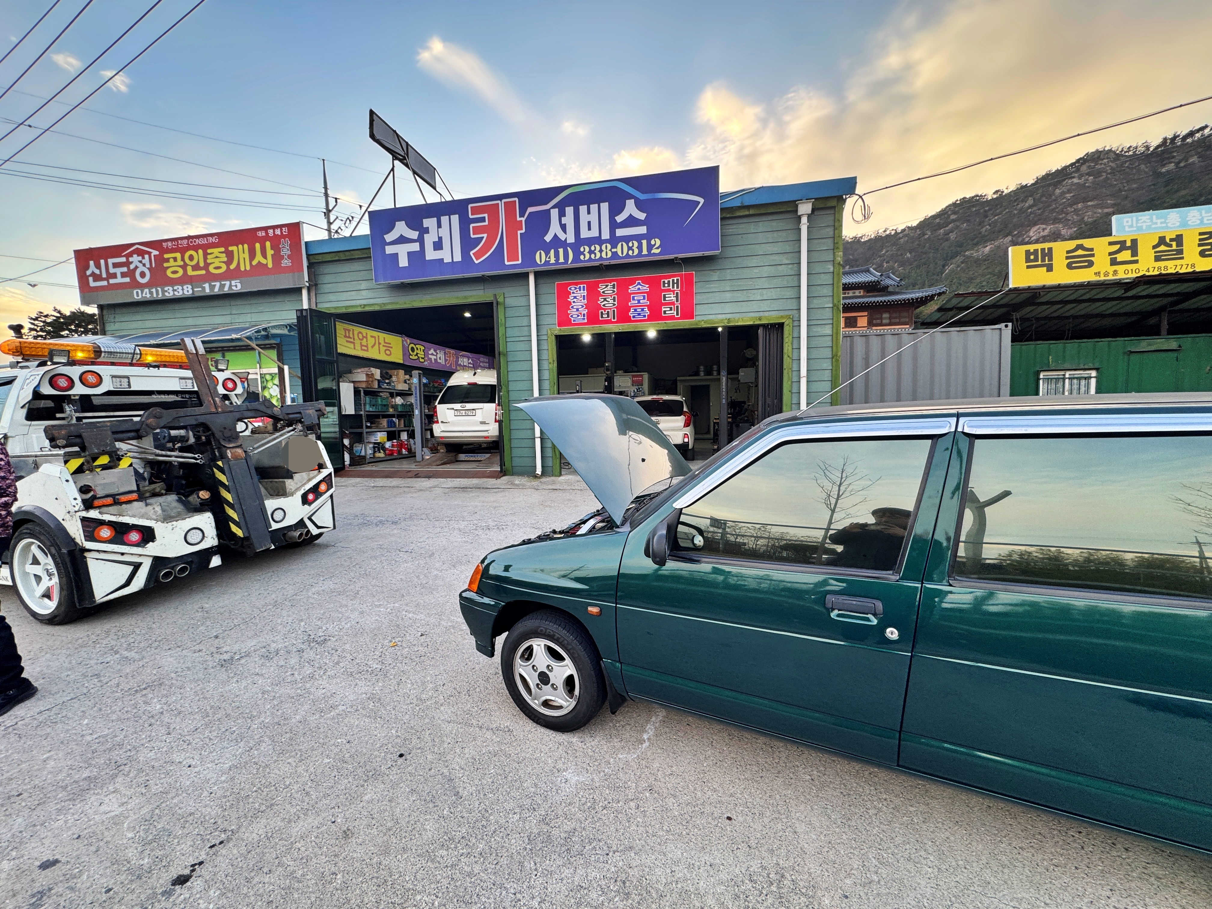 렉카 사장님이랑 카센터에 카니발의 정비를 맡긴 손님 아저씨 두 분이 잘 아는 사이더군요. 그래서 그 두분이 서로 근황을 묻고 어쩌고 얘기하더니 티코를 보고 티코와 관련된 이야기를 하고 계셨습니다. 옛날에 티코를 타고 인제에 다녀왔다는 이야기를 하시더군요. 그렇게 차를 내려놓고 앞 차량들의 정비가 끝나기를 기다립니다.