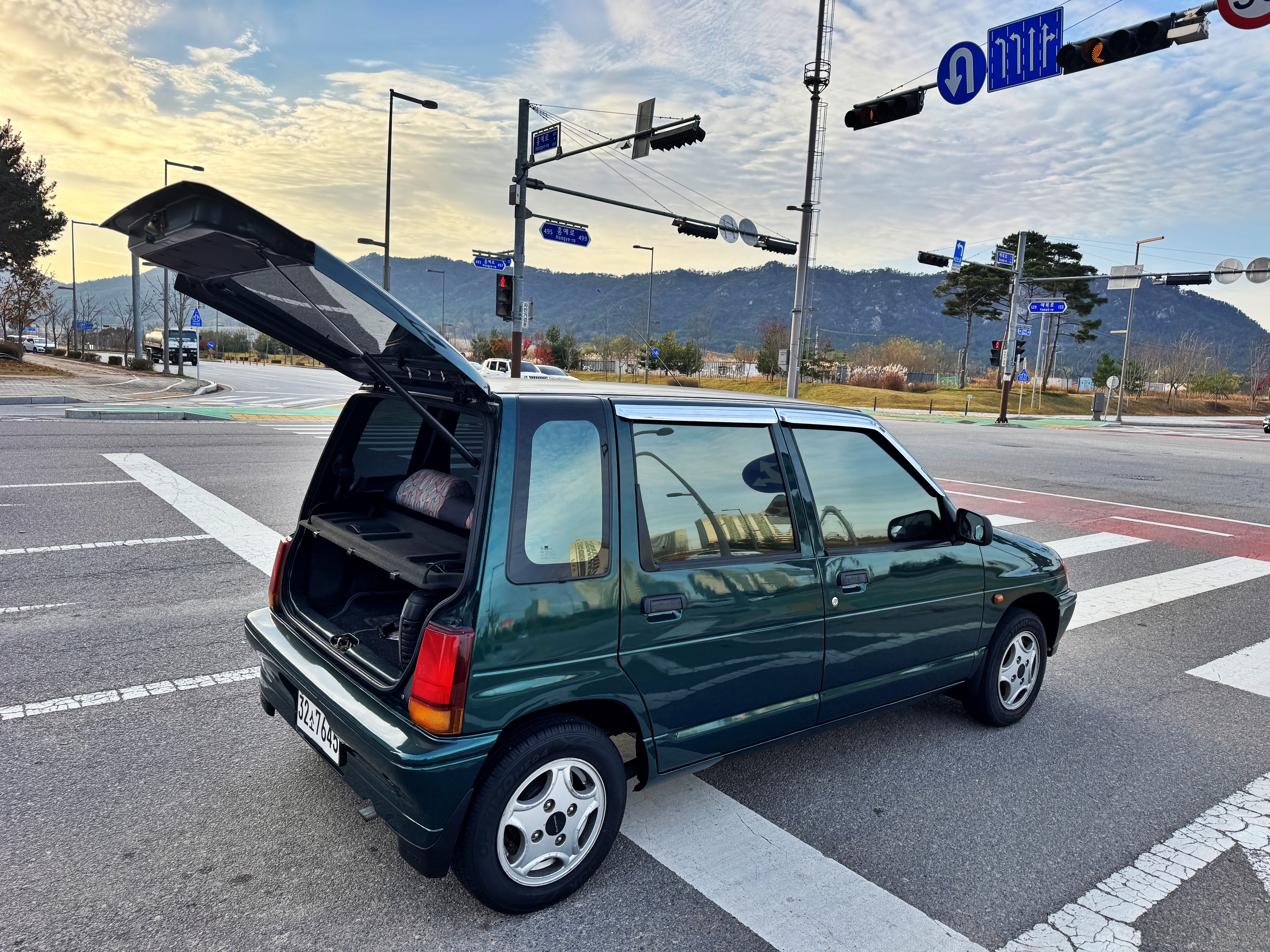곧 죽어도 큰 차나 비싼 고급차를 선호하는 한국인들이 가장 무시하고 천대하는 똥차의 대명사인 티코가 도로 한복판에 퍼져서 서있으니 아주 즐거운 구경거리가 생겼는지 다들 구경하고 갑니다. 트렁크 문을 열고 있으니 다들 퍼진 차라고 생각하곤 알아서 옆 차선으로 가더군요.