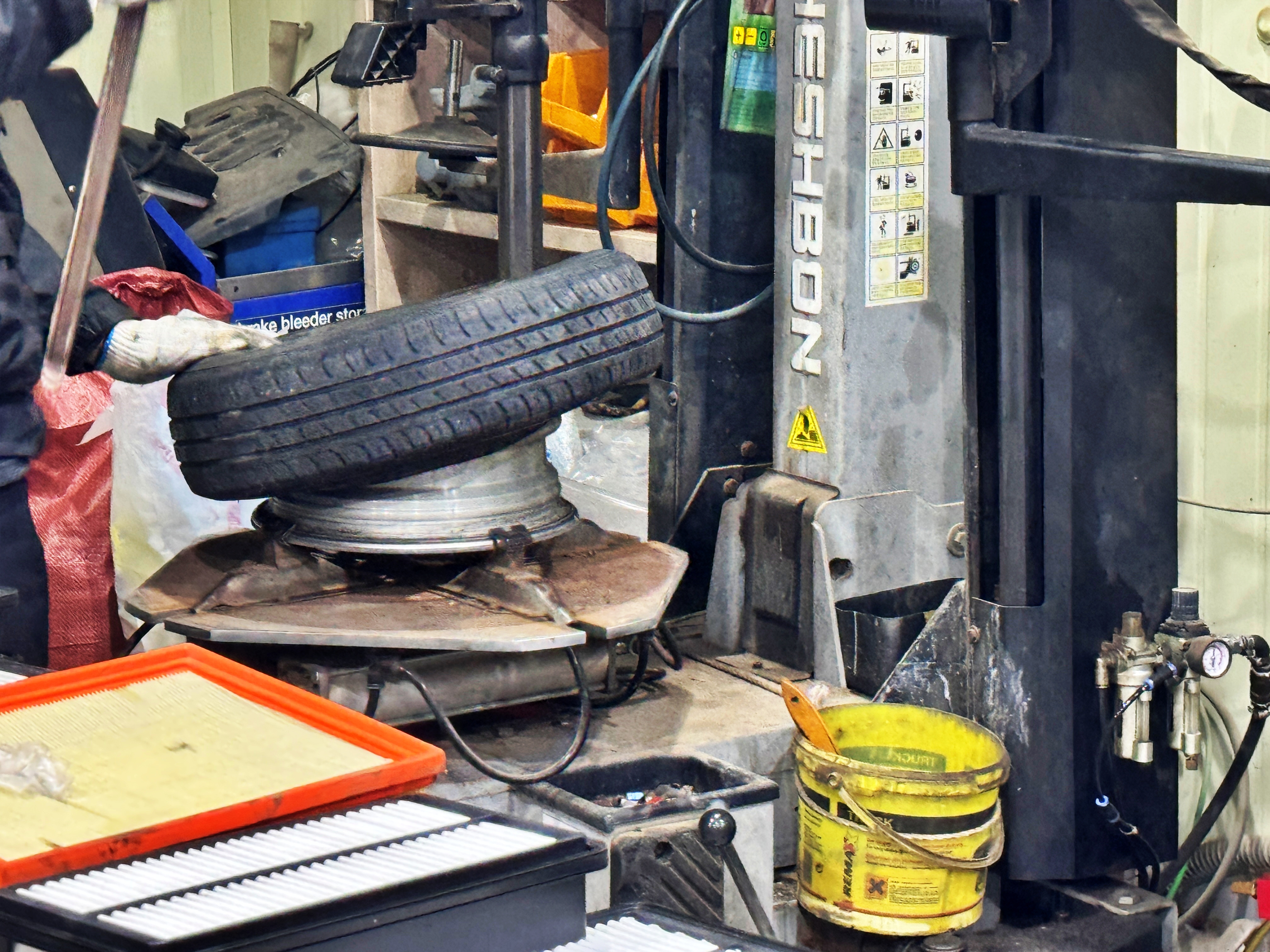 7년간 그리 많이 타지는 않았지만, 고생 많았던 타이어입니다. 그렇게 기존 타이어와 작별을 고하고 일본에서 가져온 타이어를 끼운 뒤 밸런스를 맞춰줍니다.