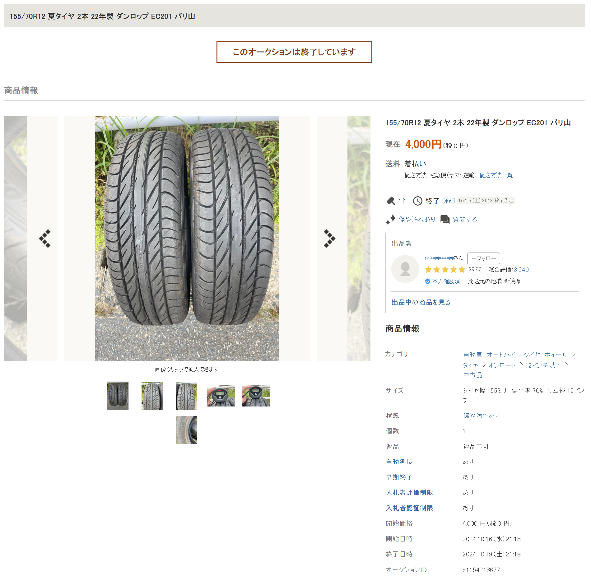 야후오쿠(ヤフオク)에서 눈여겨본 타이어가 있어 일본에 계신 분께 구입을 부탁드렸습니다.