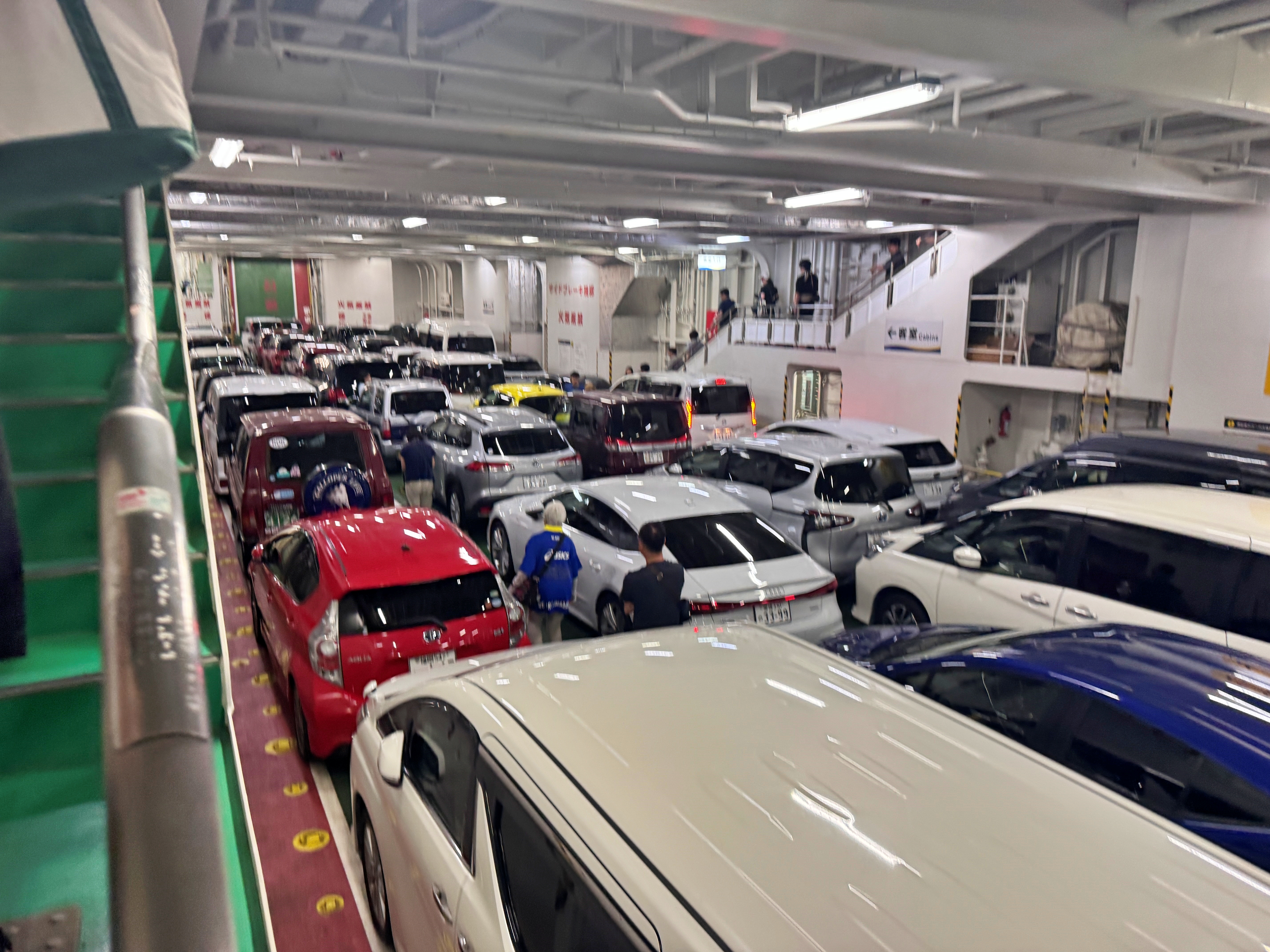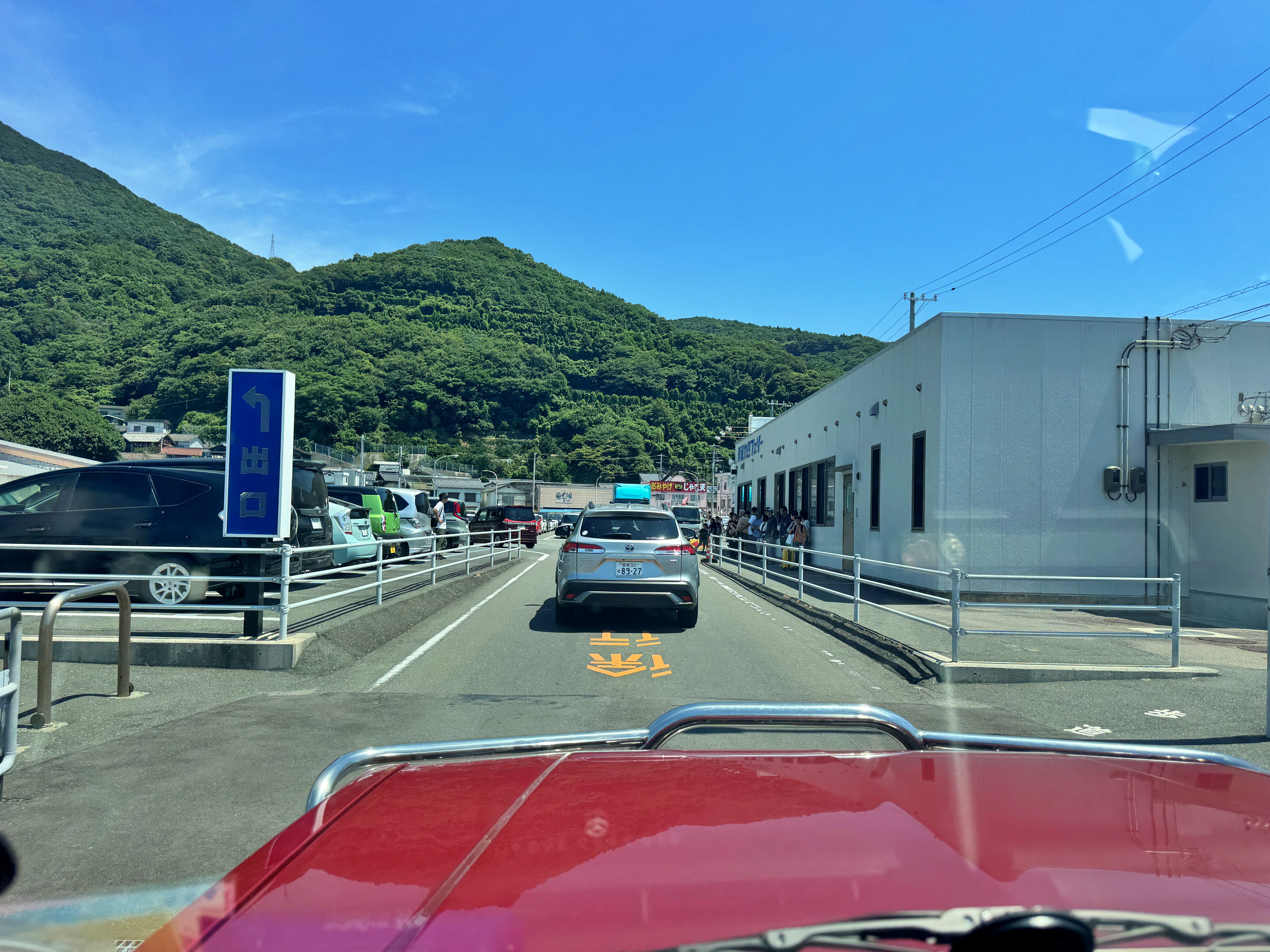 사진상 보이는 차량들만 봐도 와카야마랑 오사카 나니와 남바네요. 대부분 에히메나 오이타 번호판을 달고 있는 차량들이었지만, 백인 관광객의 시나가와 번호판 렌터카를 비롯하여 다양한 지역에서 온 차량들이 페리 탑승을 기다리고 있었습니다.