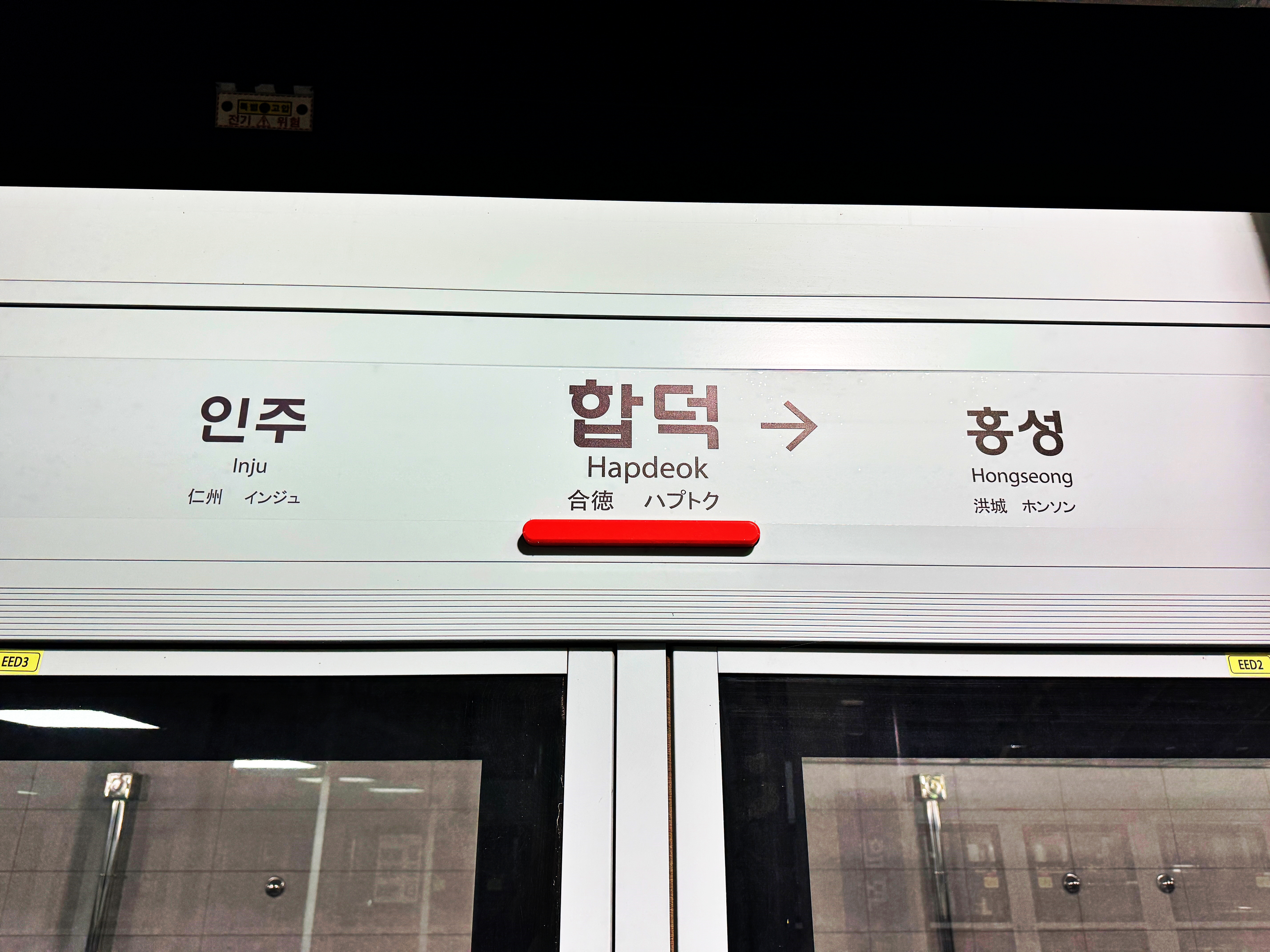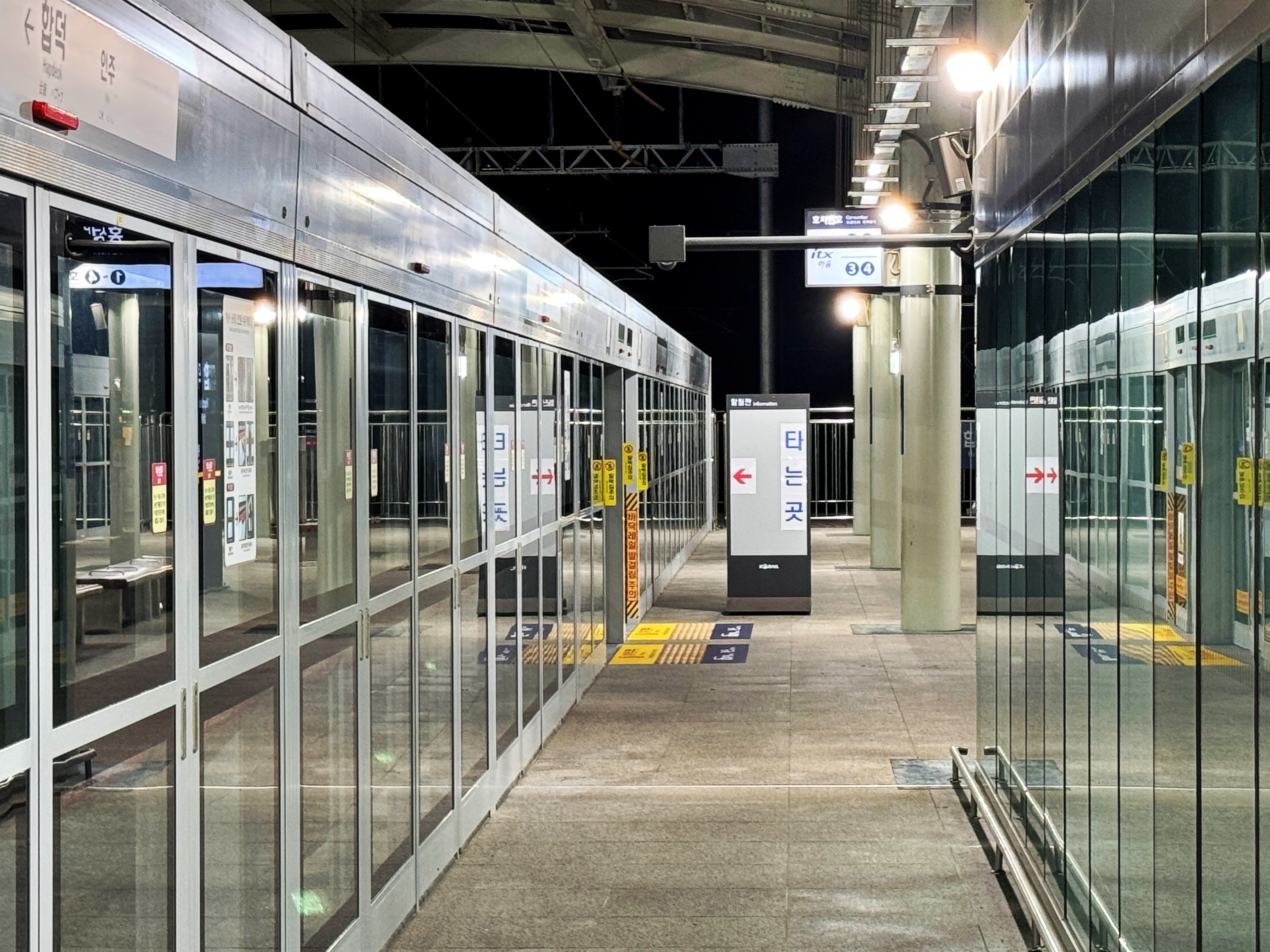 승강장은 모두 스크린도어가 설치되었으며 불이 환하게 켜져 있네요.