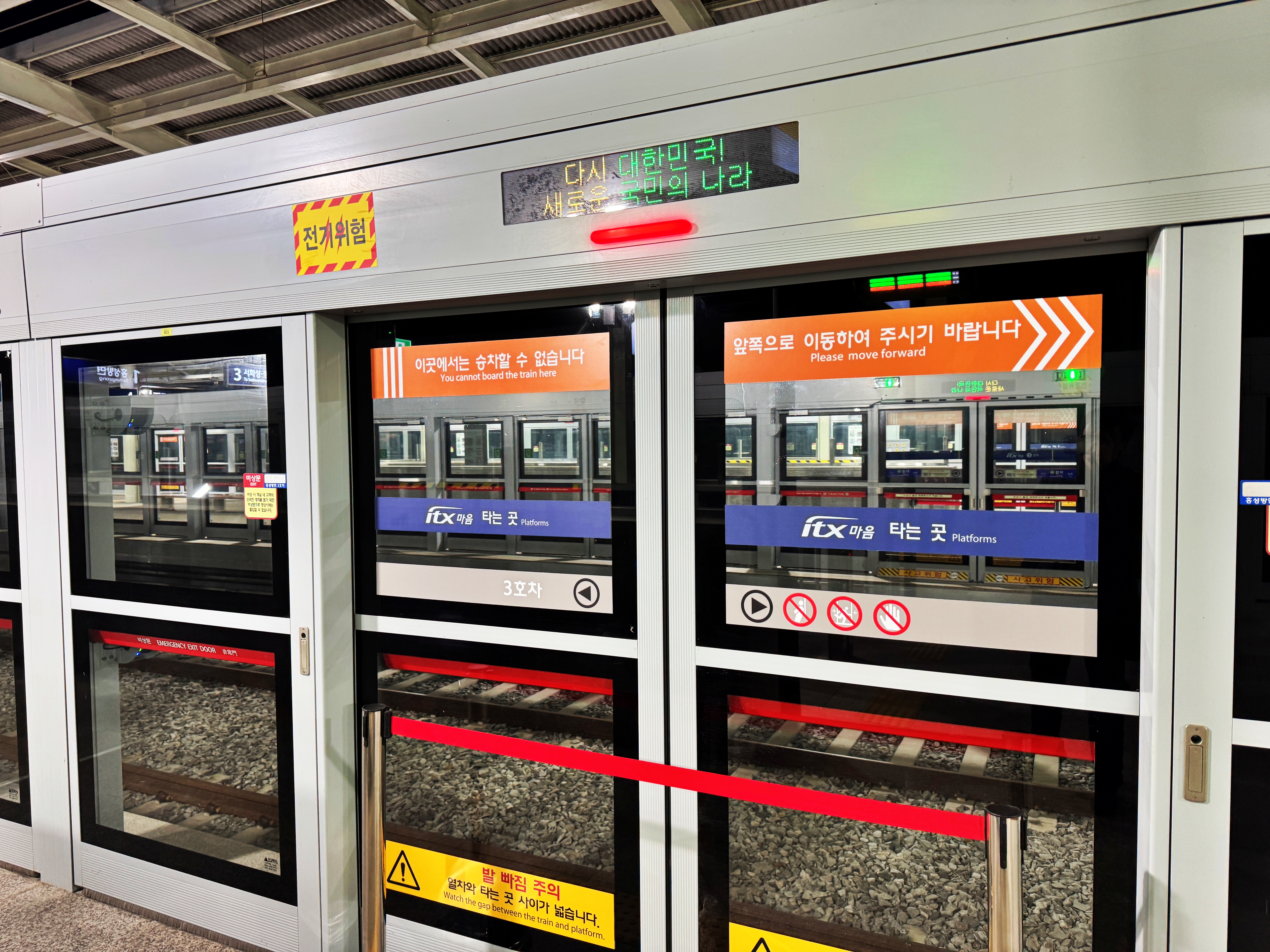 타는 곳인데 승차 할 수 없다네요. 열차를 탈 수 있는 문은 따로 알림판을 세워두었습니다.
