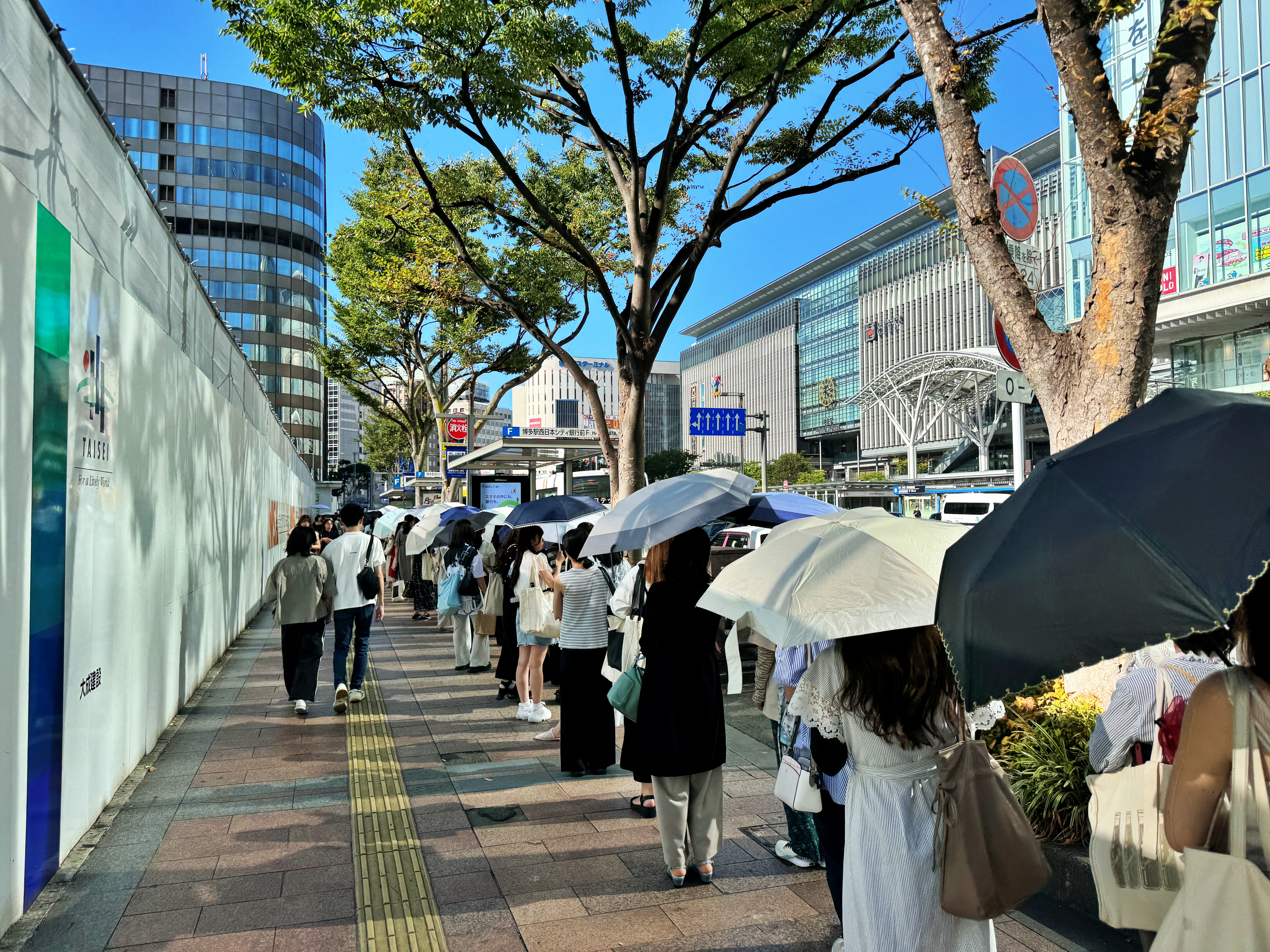 이날 YG 소속의 K-POP 그룹인 트레저(TREASURE)의 후쿠오카 콘서트가 하카타항 근처 컨벤션 시설인 마린 멧세에서 있었다고 합니다. 트레저 콘서트를 보기 위해 일본 각지에서 하카타로 온 사람들이 콘서트장으로 가는 버스를 타기 위해 기다리고 있는 겁니다. 그렇게 긴 줄을 넘어서 전철을 타고 텐진으로 이동했습니다.