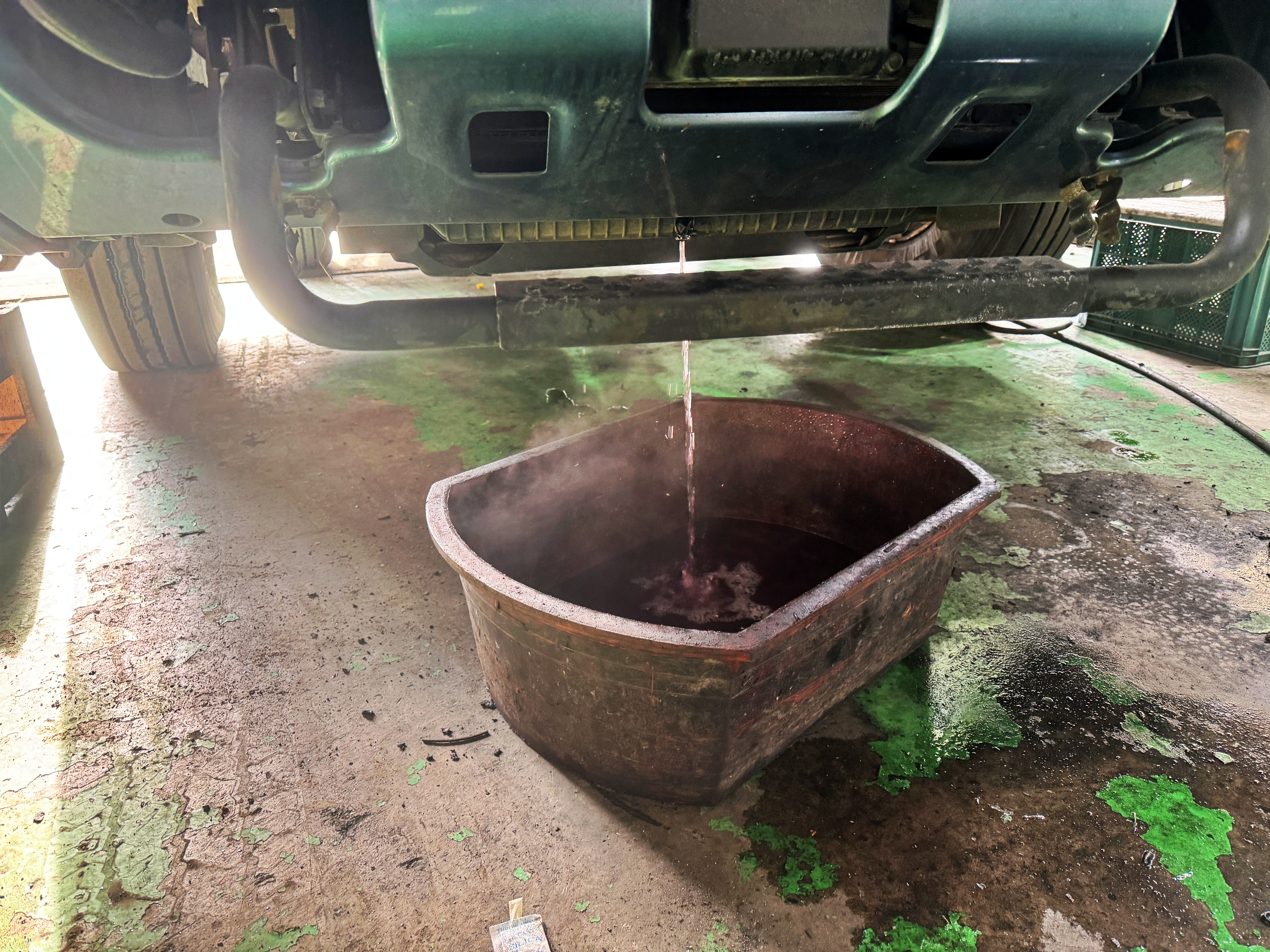 아니 방금 전에 엔진부 들어갔다 나왔는데 이걸 못 봤다고? 싶은 상황에서 휠타이어를 장착하기 전 한번 확인을 해 달라고 했습니다. 오일인지 냉각수인지 알 수 없는 상태였으나 만져보니 물이더군요. 냉각수입니다. 분명 이날 아침에 냉각수를 확인했을 때 냉각수 색도 깔끔했었는데 대체 이게 무슨 일인가 싶더군요.