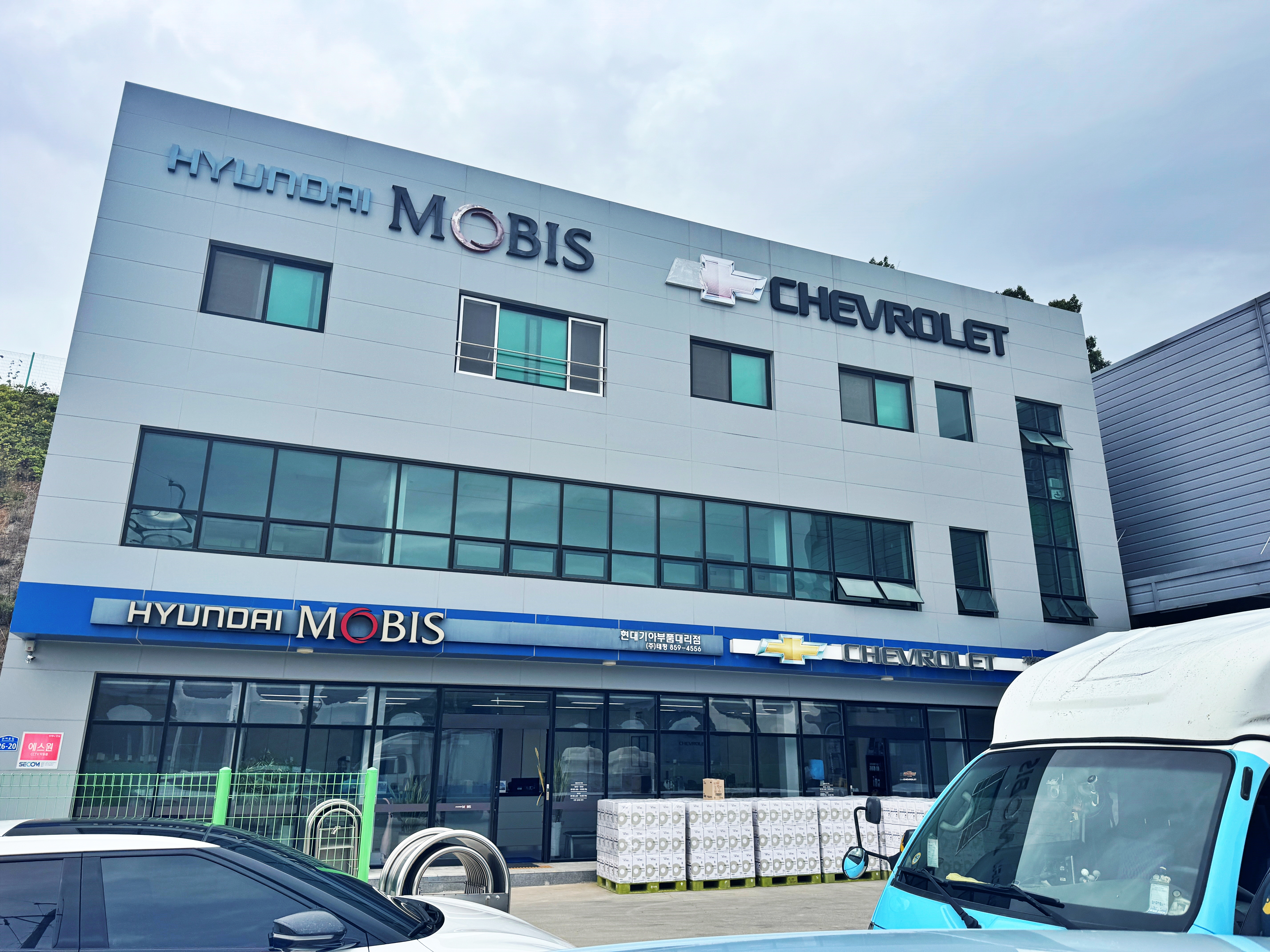 부품대리점이 여러 메이커의 대리점을 열어 함께 운영하는 경우가 종종 있습니다만, 보통 현대기아보다 파이가 적은 르쌍쉐 중 복수의 메이커를 함께 운영한다던가 상용차 부품을 취급하는 대리점에서 현대와 대우버스 타타대우의 부품대리점을 함께 운영하는 경우는 봤어도 모비스 간판을 달고 있는 곳이 다른 메이커의 대리점을 함께 운영하는 경우는 처음 봅니다.