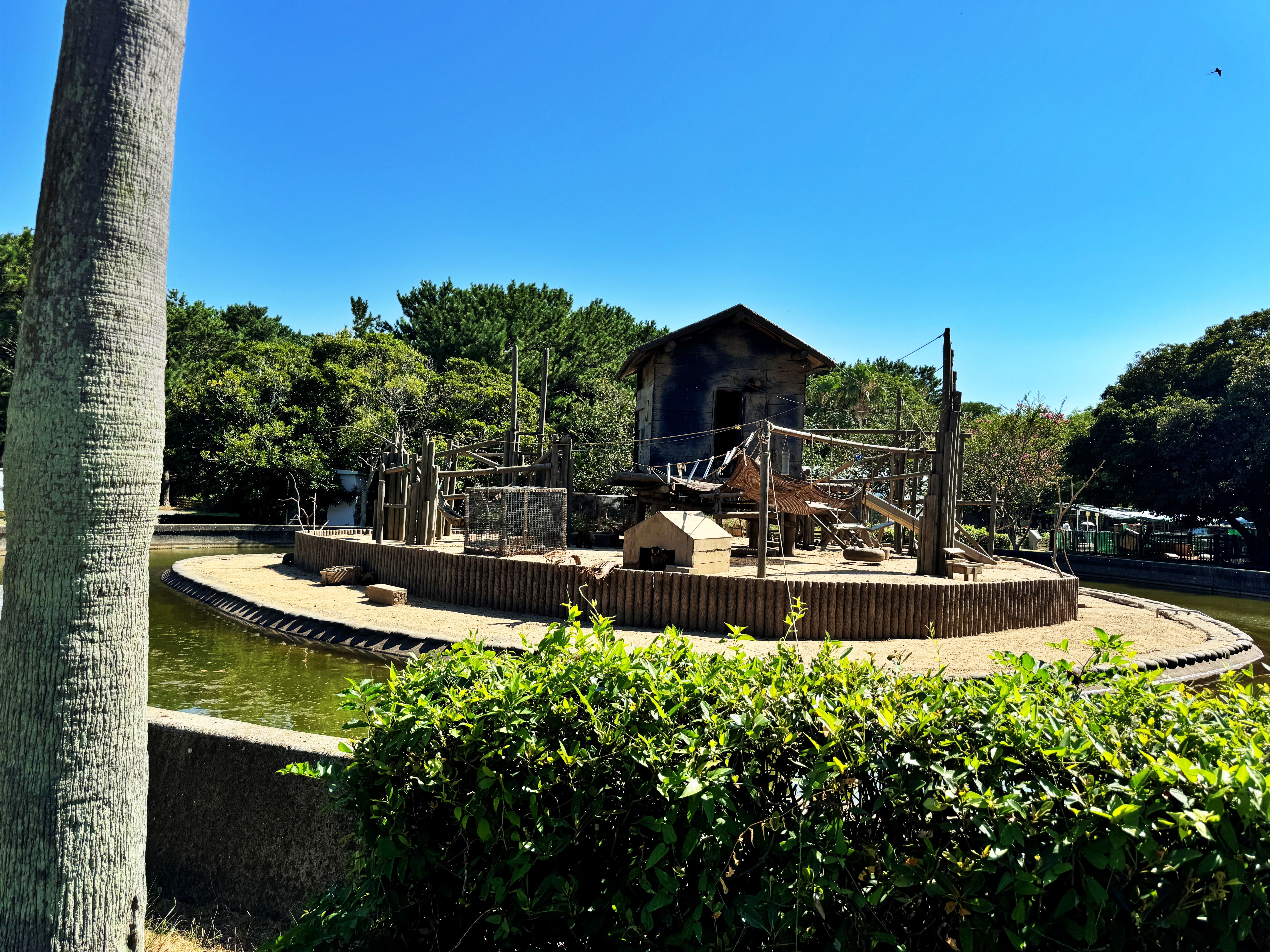 제가 방문했던 시간대가 늦은 점심시간대였던지라 동물원도 식사시간이었나 봅니다. 원숭이 우리에는 따로 울타리가 없었는데, 울타리 대신 원숭이 사육장은 고립된 형태로 이루어져 있었습니다.