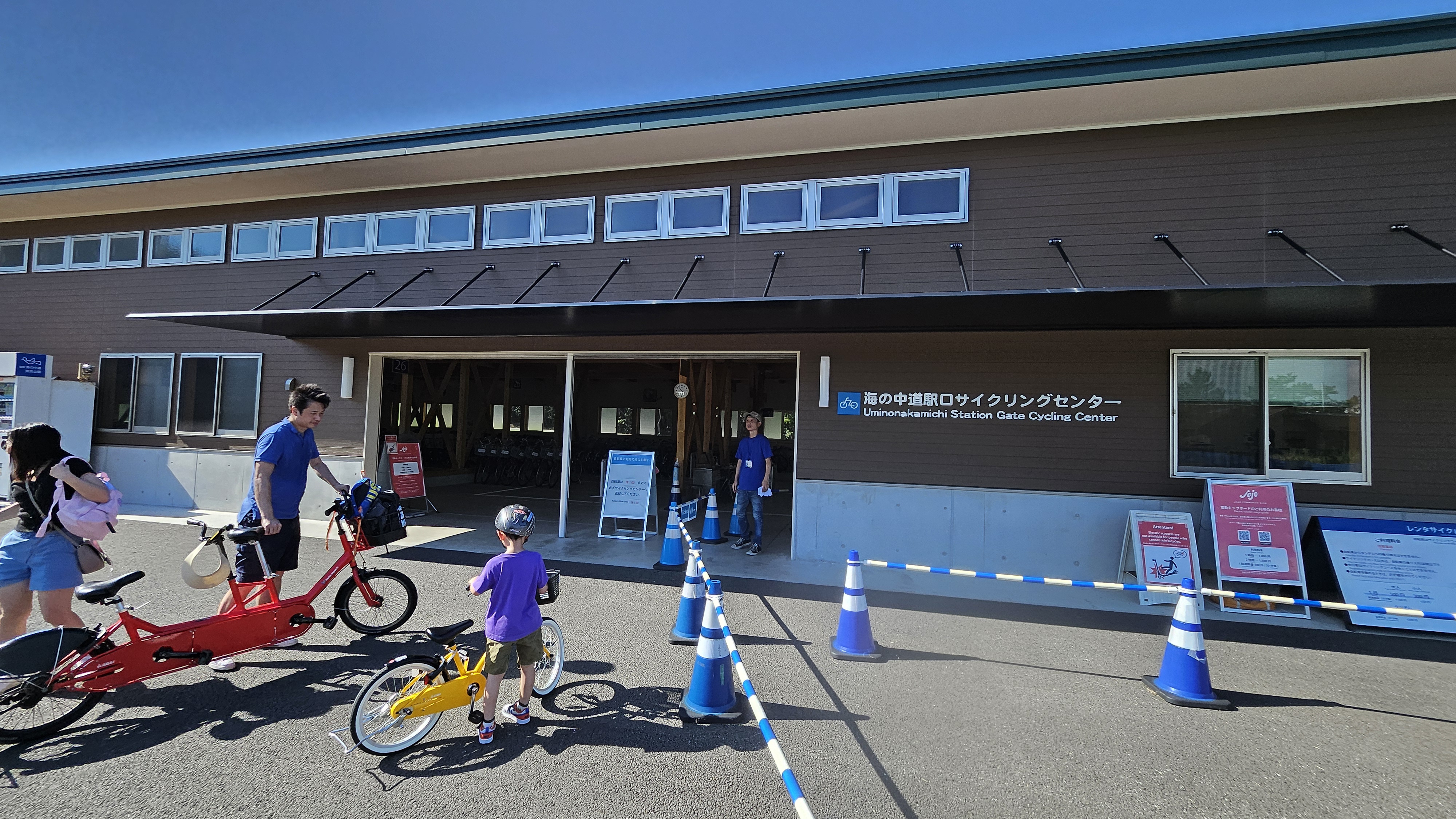 자동판매기도 없고 자전거나 킥보드를 타고 지나가는 사람도 드문드문 보일 뿐 사막 느낌입니다. 목도 마르고 여러모로 미치겠더군요. 그렇게 열심히 자전거 페달을 밟아 출발했던 우미노나카미치역 사이클링 센터에 도착하여 자전거를 반납합니다.