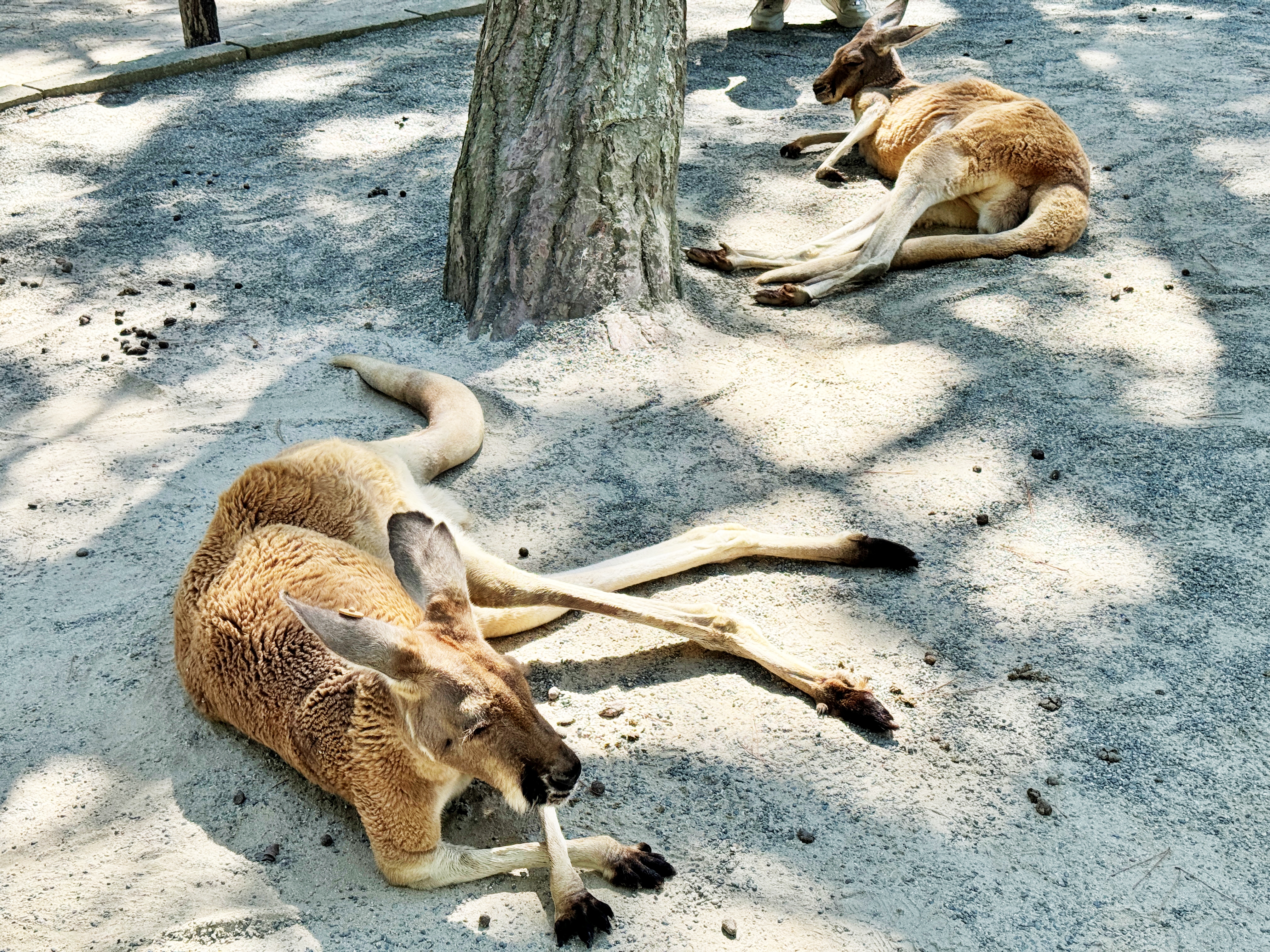 캥거루도 의욕이 없습니다. 점프를 하는 모습은 커녕 일어나지도 않네요.