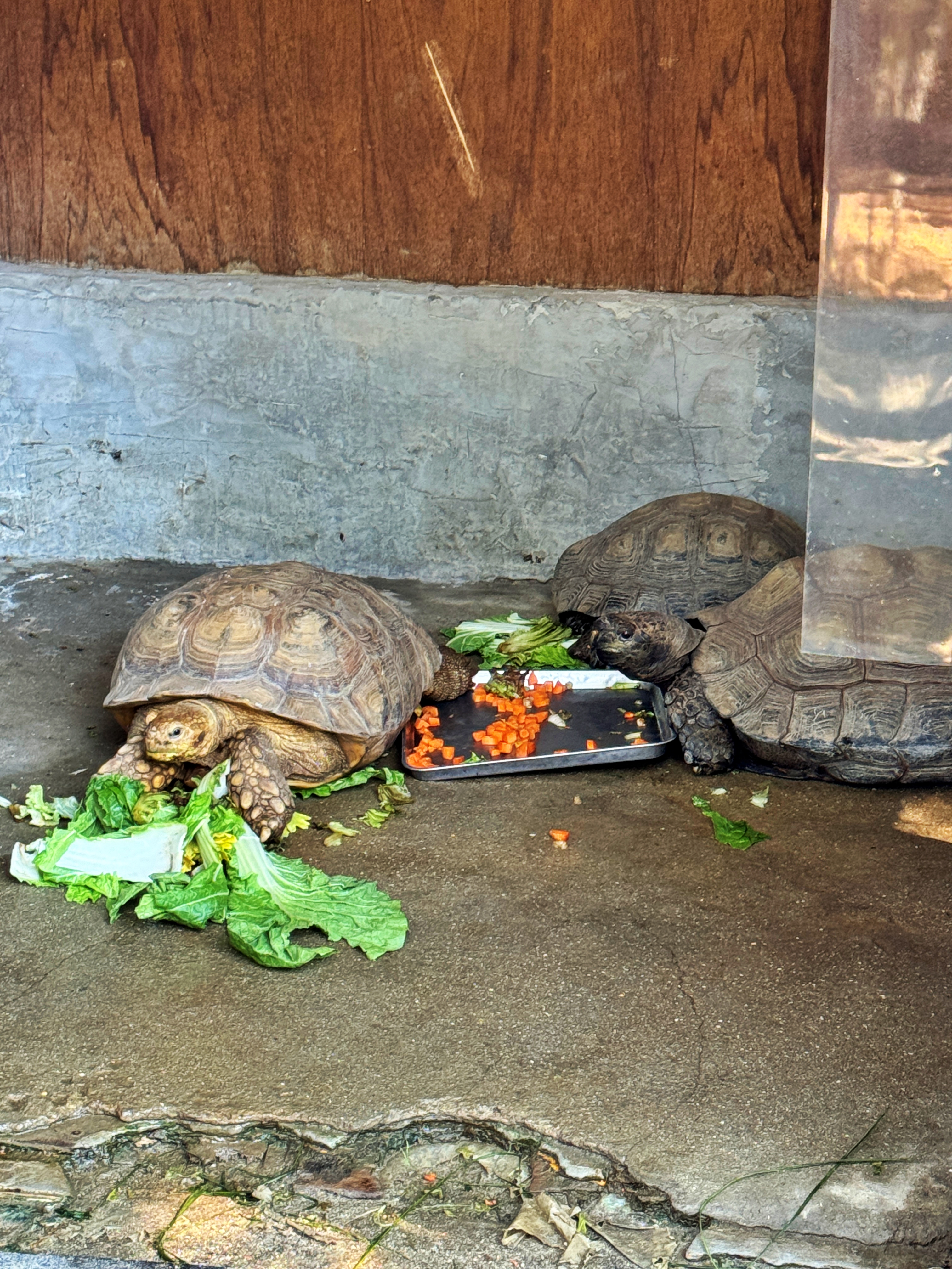 다른 한켠에서는 거북이들이 식사를 하고 있었습니다.
