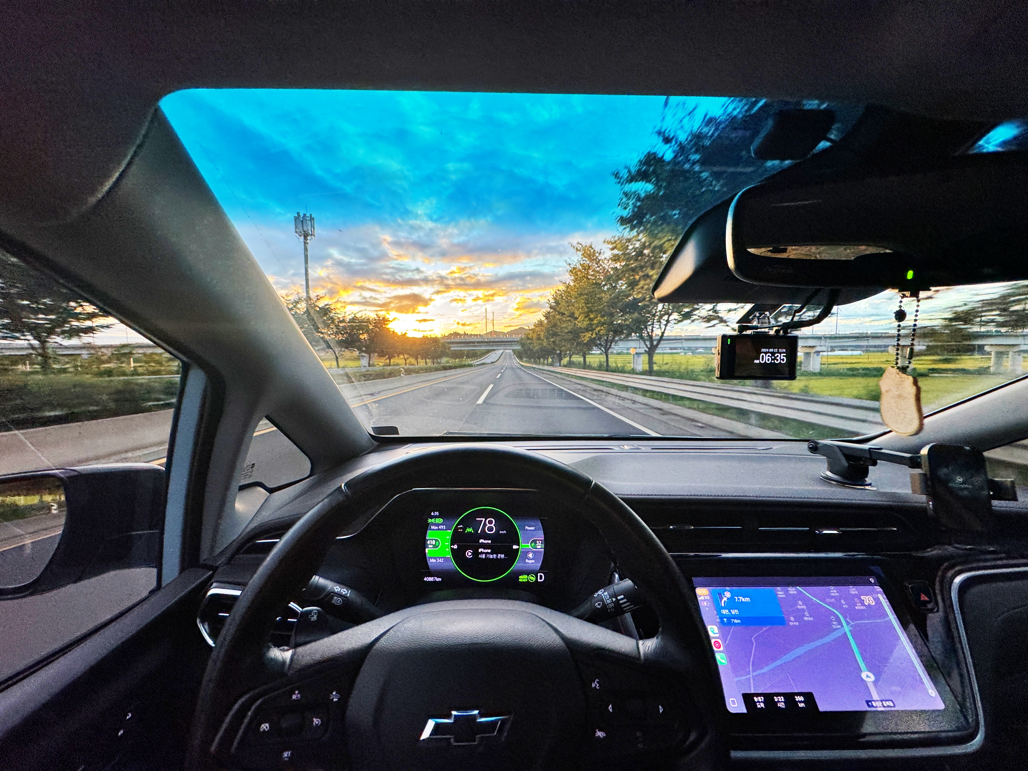 경로 중 90% 이상이 고속도로였고, 고속도로에서도 기어가는 수준이 아닌 흐름에 맞는 100~110km/h 정도의 속도로 달렸습니다. 일요일 이른 아침이라 당연히 정체는 없었고요. 국도에서 신호도 아주 잘 받았고, 고속도로도 정차 없이 달린 뒤 부산에 다 와서 처음으로 정차했습니다.