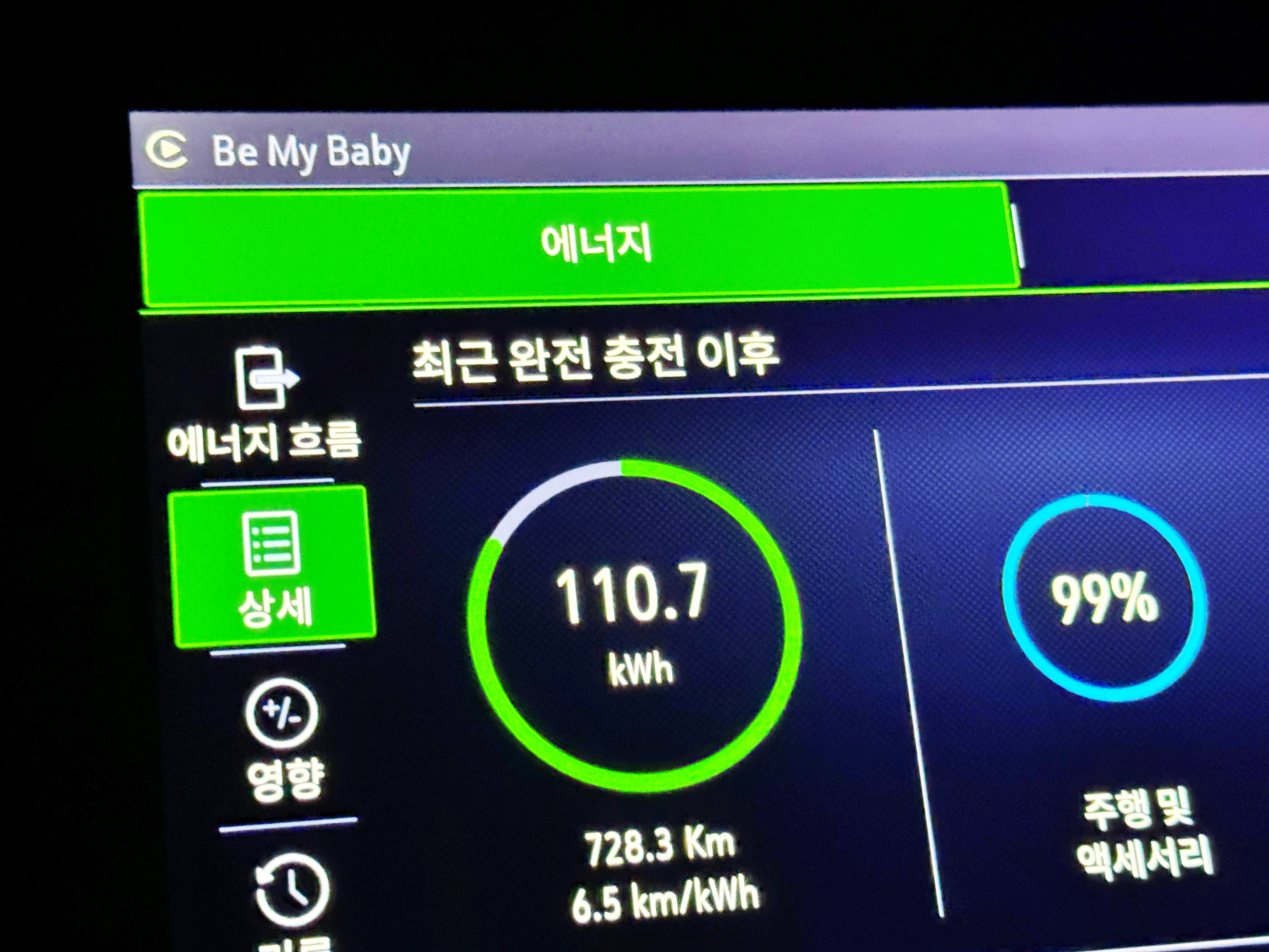 왕복 723.8km를 달렸고, 총 110.7 kWh의 전력을 사용했습니다. 전비는 소폭 상승하여 6.5km/kWh로 표시되어 있네요. 비싼 급속 충전기를 물리고 다녀도 내연기관 대비 훌륭한 경제성을 보여줍니다. 전비를 생각하고 8~90km/h만 놓고 간다면 더 좋은 결과가 나왔겠지요. 다음에는 전비까지 신경써서 다녀온 뒤 유의미한 차이가 있는지 비교해 보기로 합시다.
