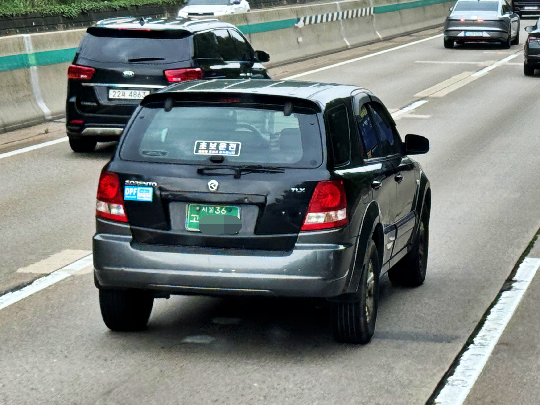 2002년 11월에 등록된 차량으로 서울 중랑구에서 발급된 '서울 36' 지역번호판을 부착하고 있었습니다. 쏘렌토 역시 2005년 부분변경 이전까지 밀레니엄 기아 엠블럼이 적용되었고 초기형 차량들에는 어김없이 이 밀레니엄 기아 엠블럼이 붙어있었습니다. 중기형 후기형 차량들이 간간이 보이지만 초기형은 정말 오랜만에 보는 느낌입니다. 초보운전 딱지를 붙이고 다니는 모습으로 보아 아마 차주의 가족 중 누군가가 운전을 새로 시작하며 운전연습용 차량으로 이용되고 있지 않나 생각됩니다.
