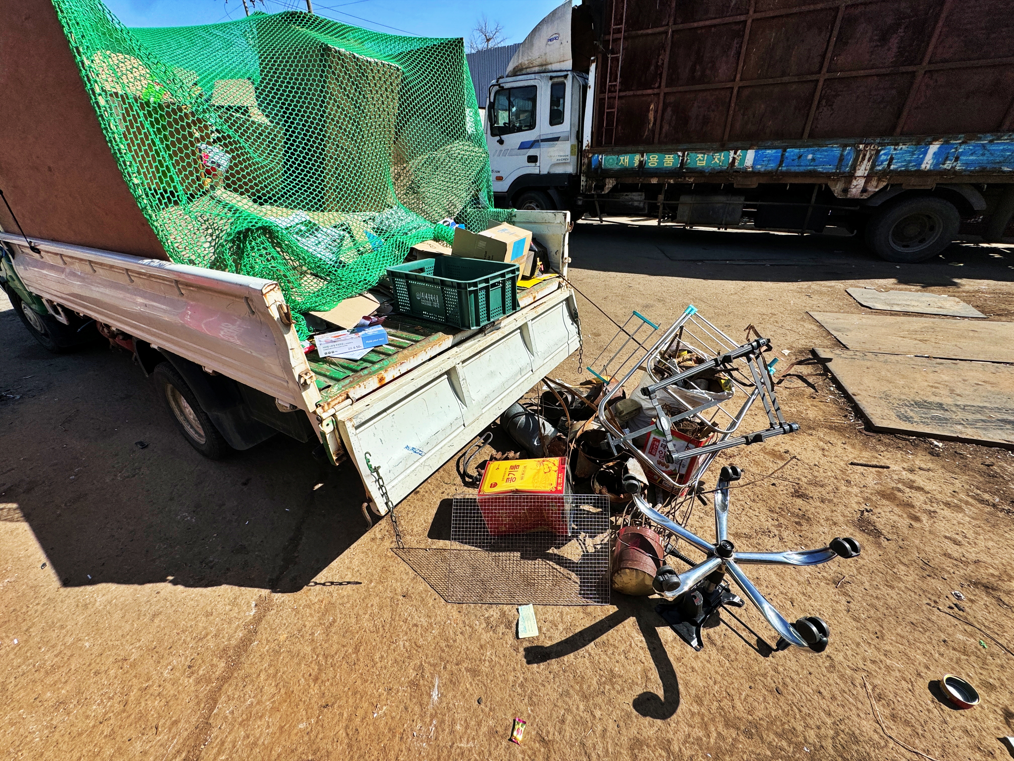 물론 PMC와 분해한 에어컨에서 나온 고가의 금속들이 있었기에 가능했던 결과입니다. 아직 가져오지 않은 잡동사니들이 많았던지라 다음에 가서 가져와야지 했는데.. 큰차를 타고 마침 버스에서 나온 부산물을 가져왔던 곳 근처에 갔던지라 큰차에 싣고 결박을 하다가 차에서 떨어져 다치고 말았습니다.