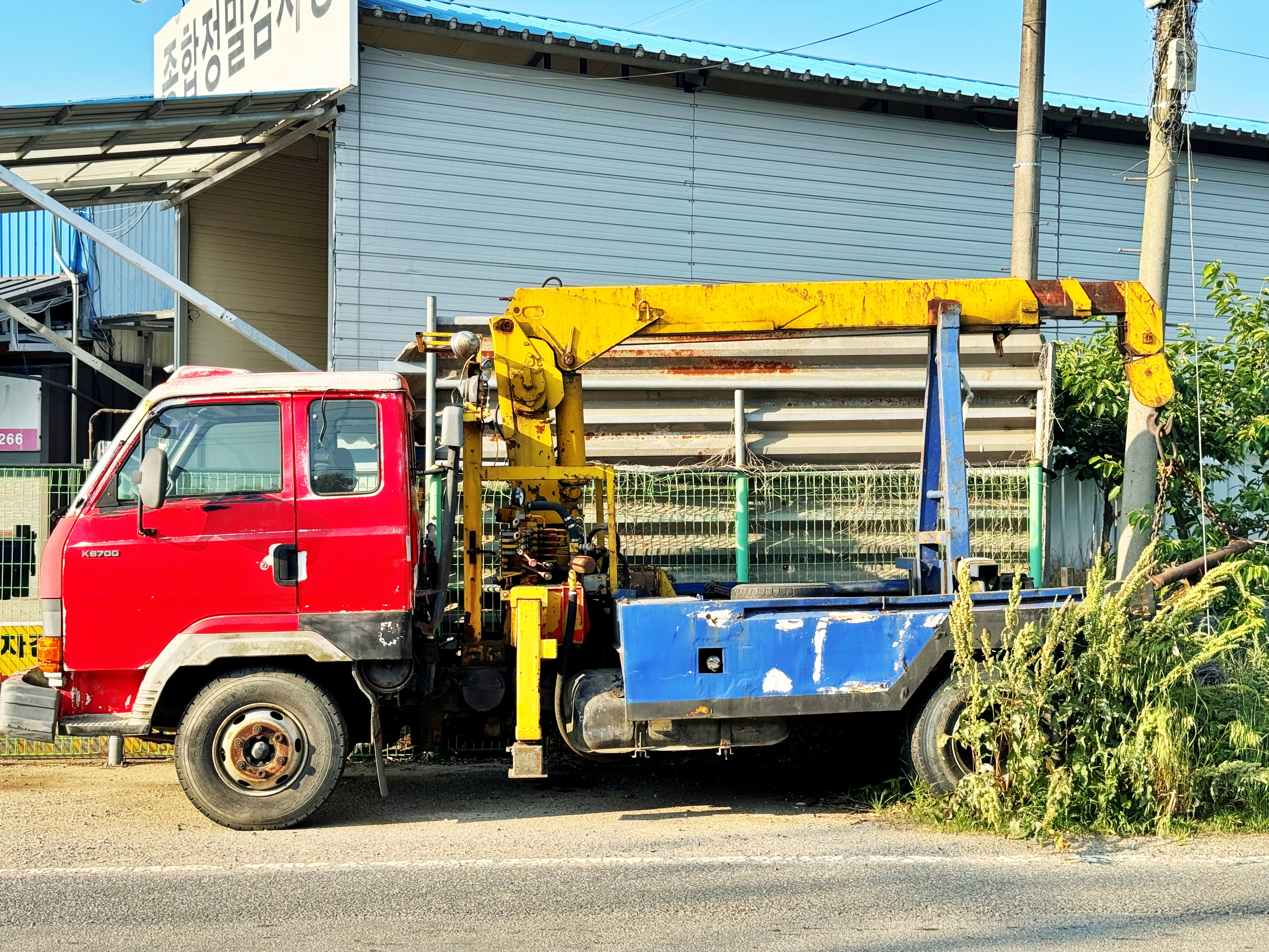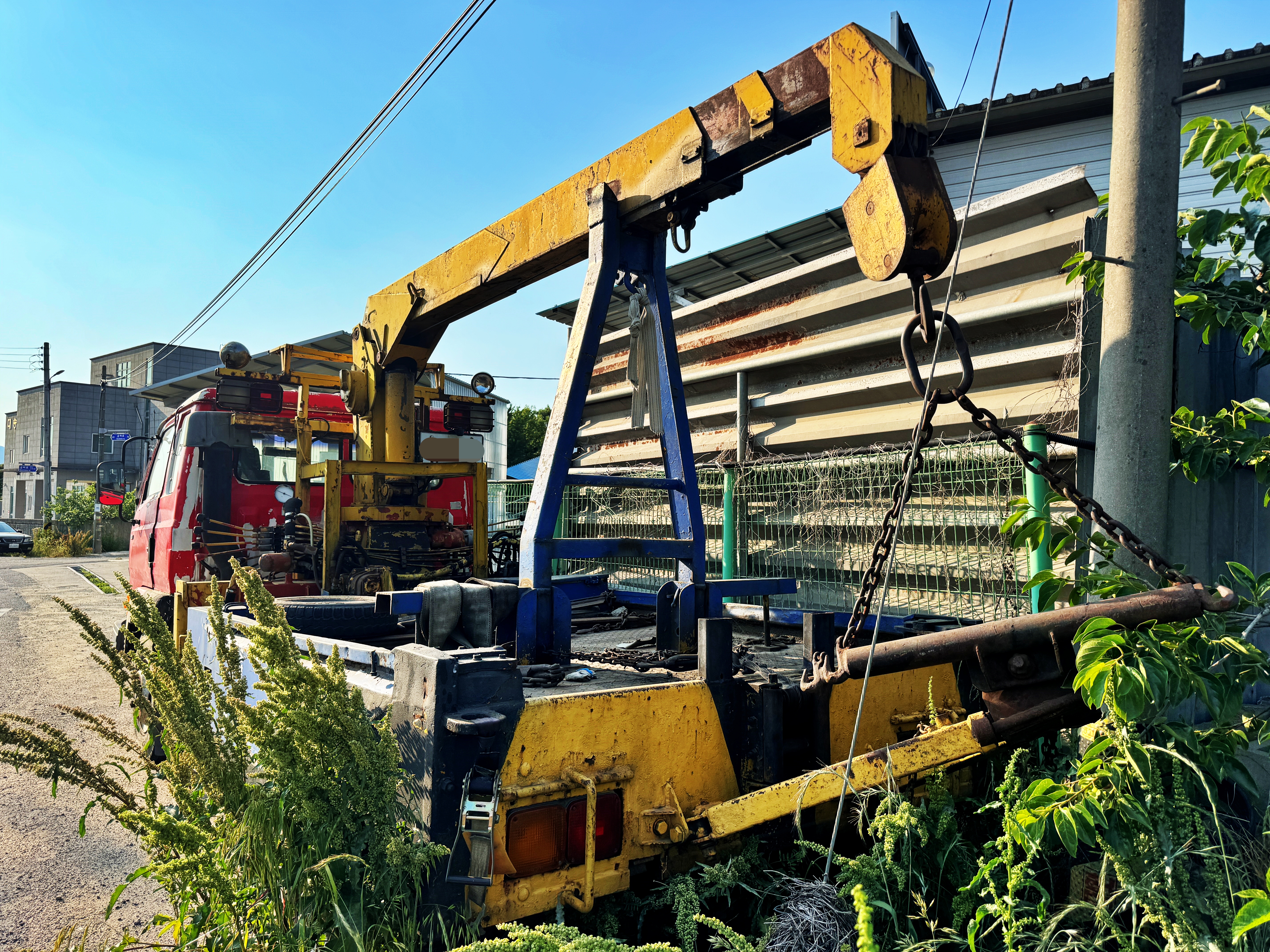 예전에는 무조건 이런 붐렉카나 줄렉카가 대세였지만, 토우바를 걸어줘야하는 붐렉카나 줄렉카 대신 차량 아래로 T자 모양의 리프트를 넣어 바퀴를 들어올리는 언더리프트가 구난차 시장에서도 대세가 된지 오래입니다. 1톤급 소형렉카는 물론이고 버스나 화물이 적재된 트럭까지도 견인 가능한 대형렉카까지도 말이죠. 그래서 신형 차량의 붐렉카는 보기 어려울 뿐더러 있더라도 견인보다는 구난작업에 활용하는 일이 잦고 이렇게 폐차장이나 공업사에서 사용하는 차량이 소수 남아있습니다.