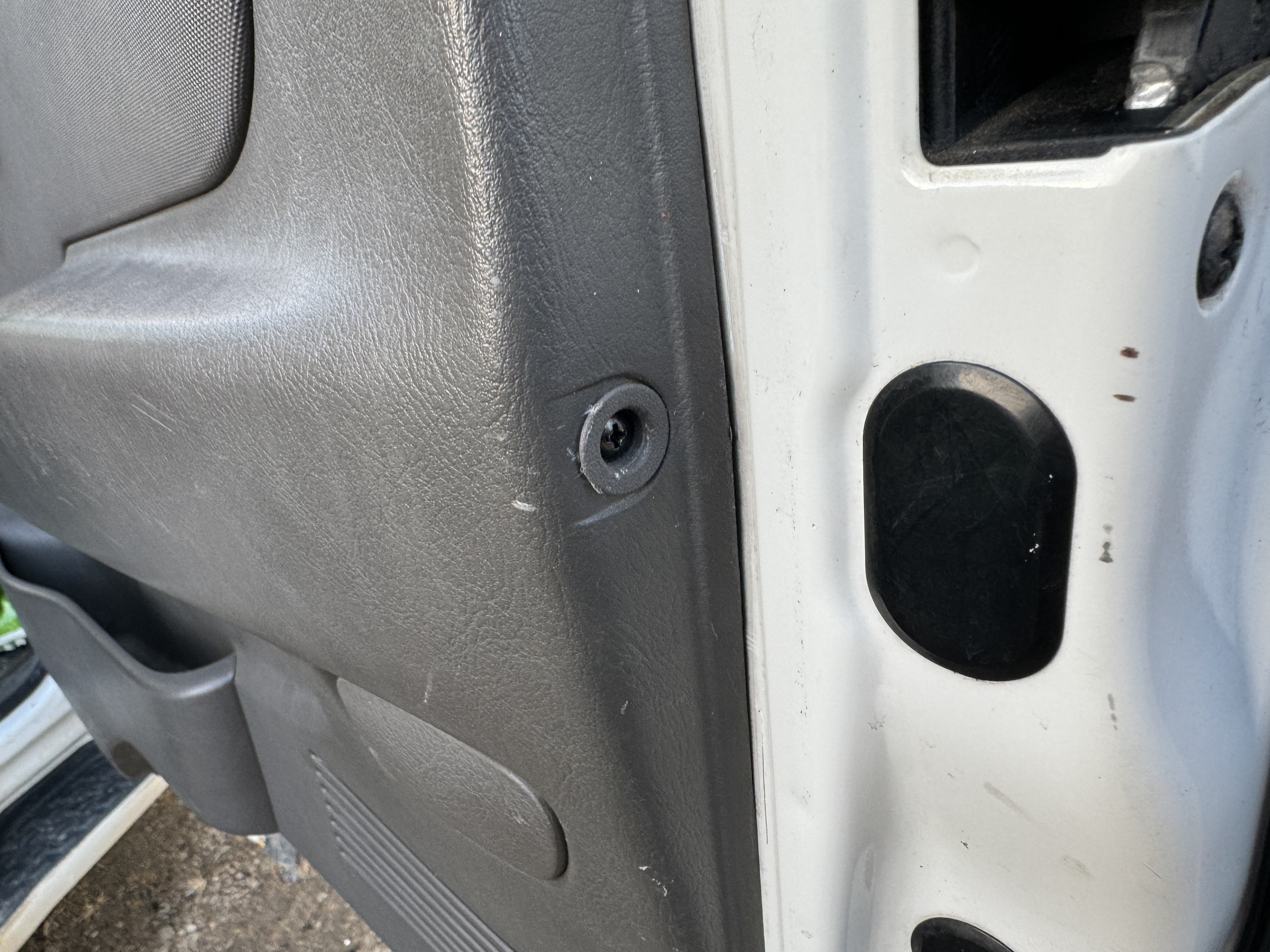 작은 커버를 벗겨내야 보이는데, 1톤 차 도어트림 탈거법이라고 유튜브에 쳐서 나오는 영상들을 봐도 그냥 피스만 풀어주면 된다고 하지 저 피스 커버에 대한 설명은 없었습니다. 그래서 강제로 뜯네 마네 하다가 결국 작은 커버의 존재를 확인하고 풀어줬네요.