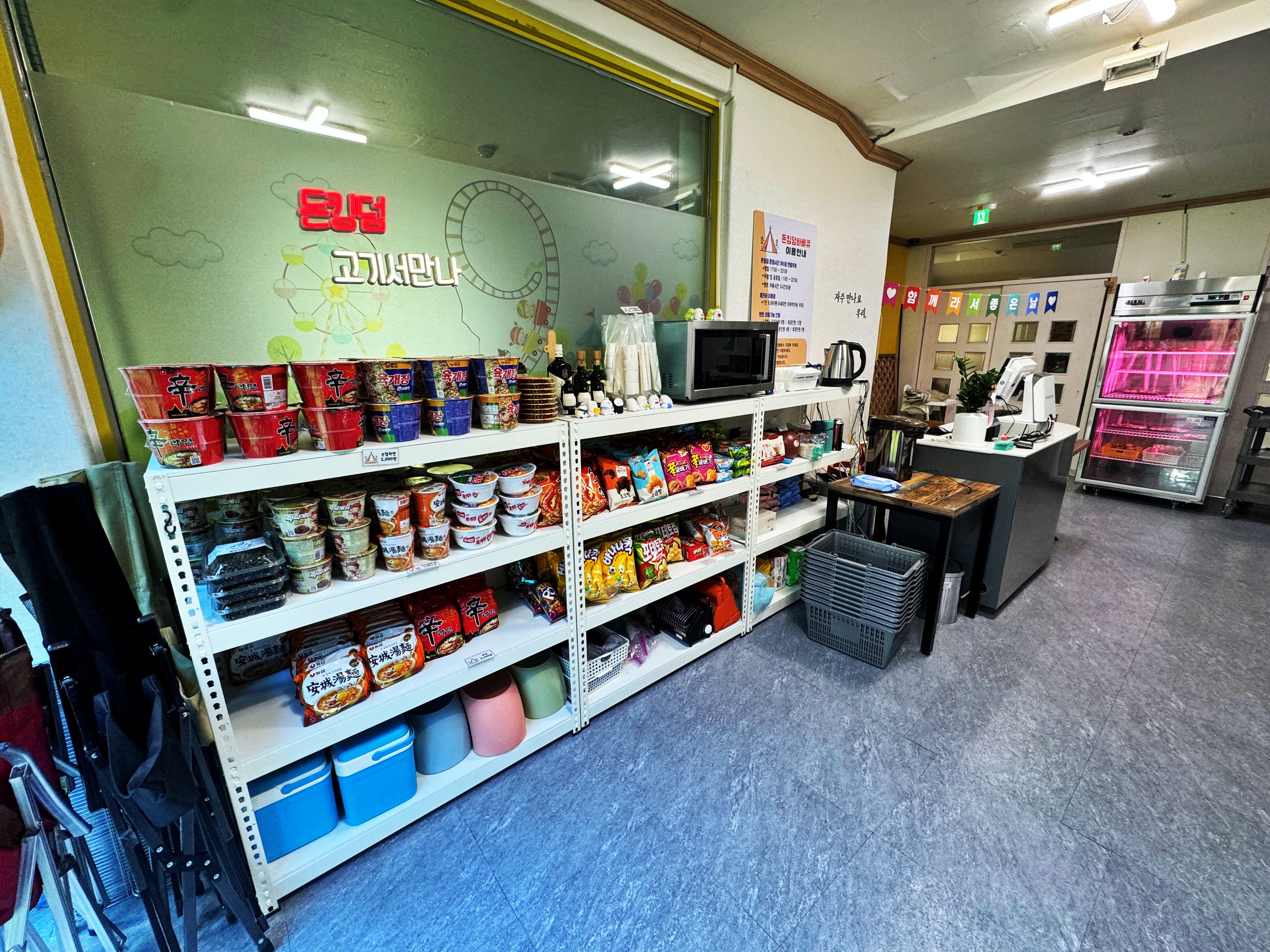 고기 외에도 주류와 간식 및 후식으로 먹을 수 있는 라면이나 술안주를 판매하고 있었습니다.