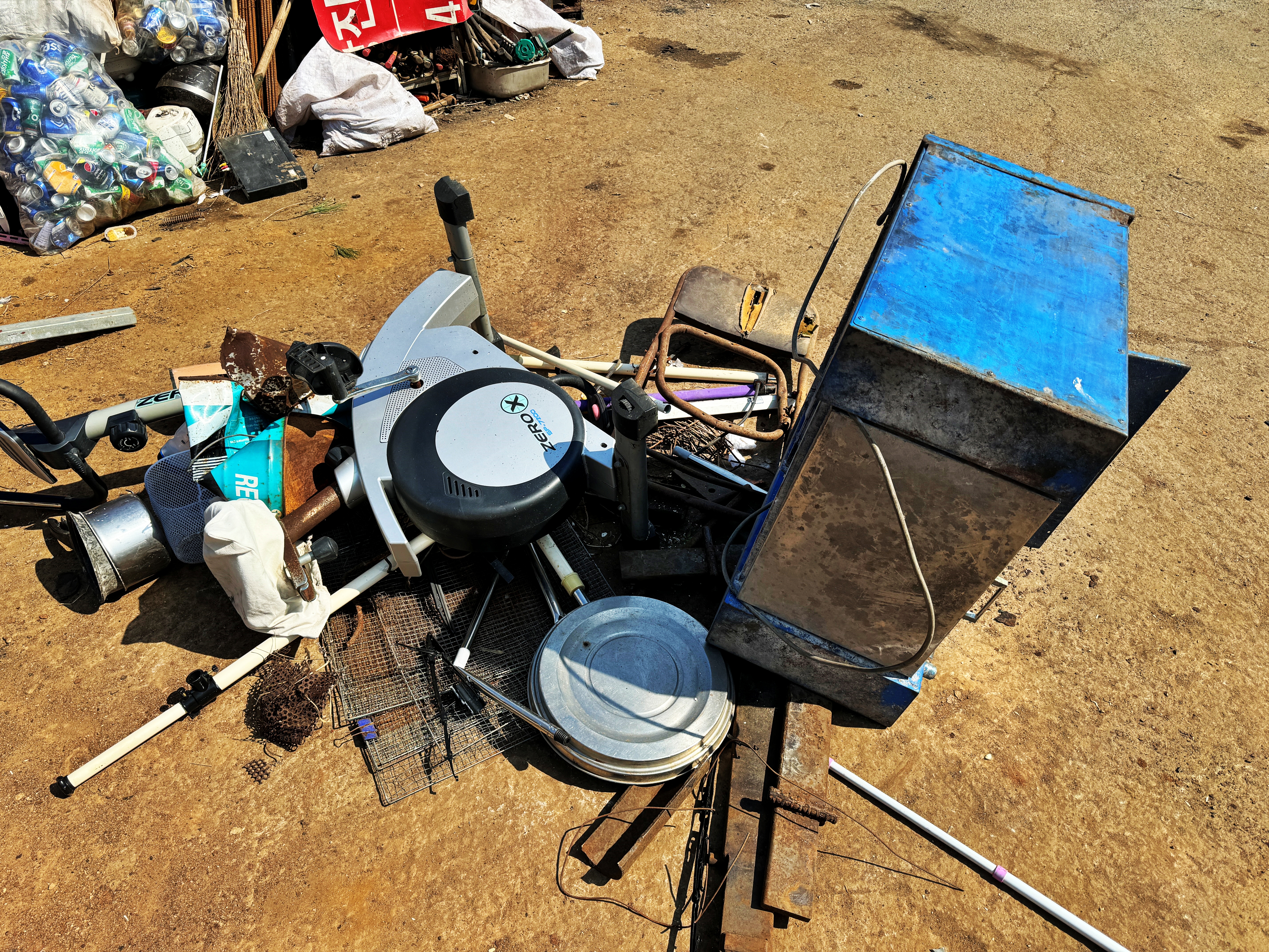 버스에서 탈거된 부품들도 있고, 고장난 온수기같은 잡동사니도 섞여있습니다. 이걸 받아서 내려온 뒤 다음날 분류작업을 진행했습니다. 이날 가져온 물건들과 다음날 해체했던 에어컨에서 나온 부속물들을 한 번에 가져다 팔았습니다.