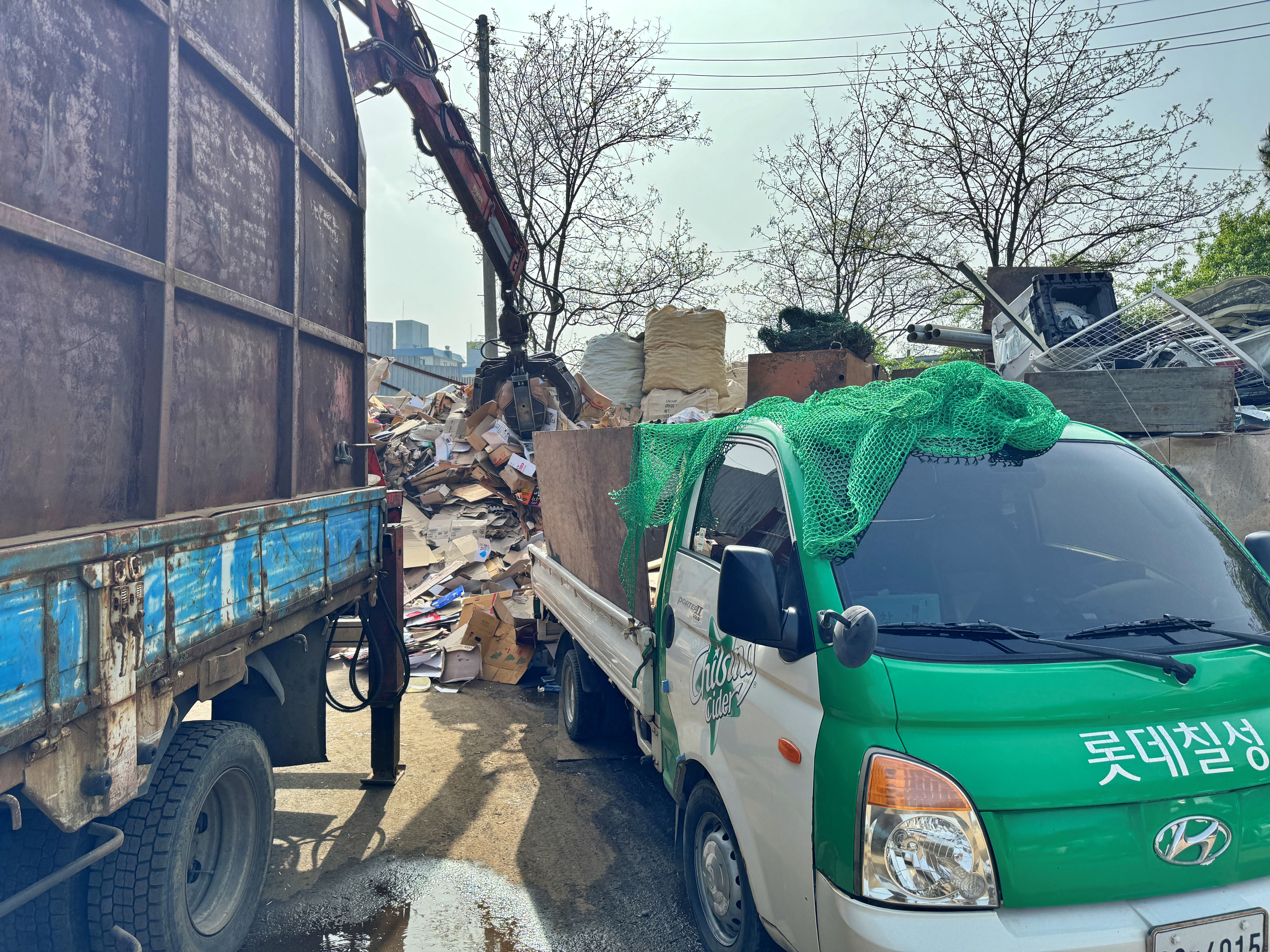 합판으로 벽도 세우지 않았고, 종이도 접어서 정리하지 않은 상태로 왔네요. 물론 그냥 이 상태로만 왔으면 받아가는 돈이 얼마 안됩니다만... 마침 가는 길에 도로 위에 떨어진 H빔을 주워서 가져가서 예상보다 돈이 좀 나왔습니다.
