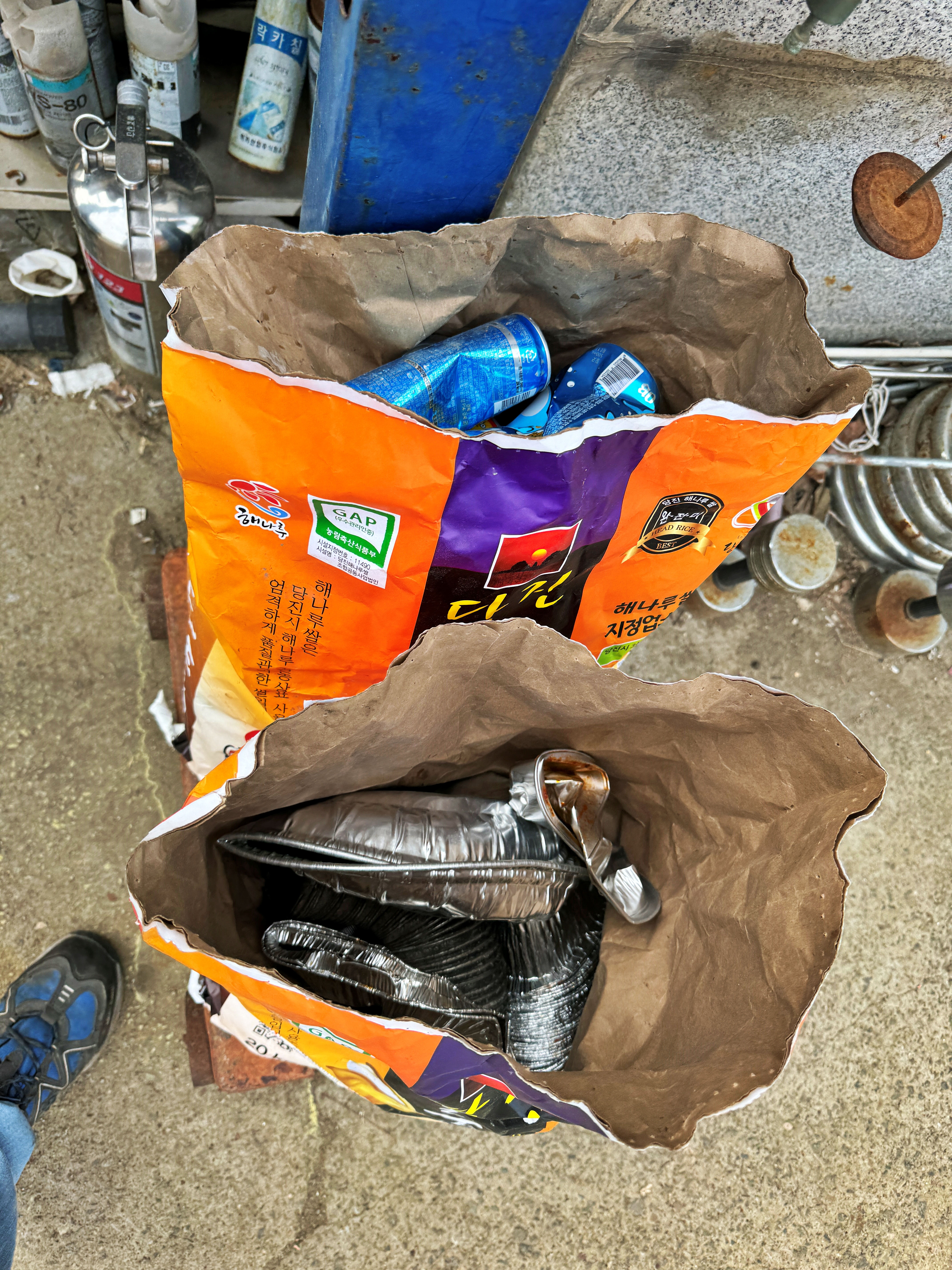 캔도 압축하여 마대에 넣고 다니며 어느정도 채워졌을 때 팔았는데 이번엔 그냥 가져와봤습니다.