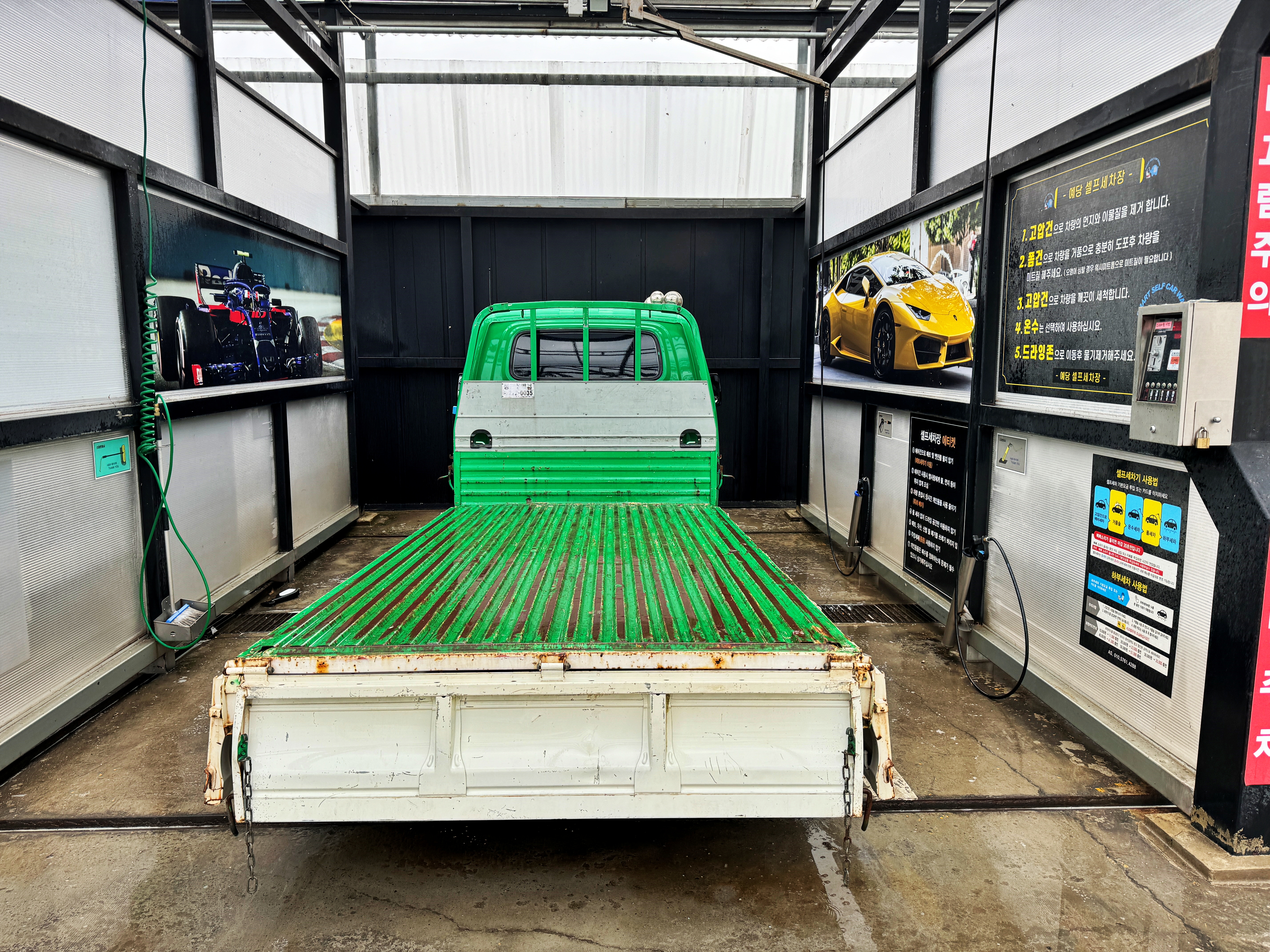 에어탱크를 채우고 바로 세차장으로 이동해서 세차부터 진행합니다.