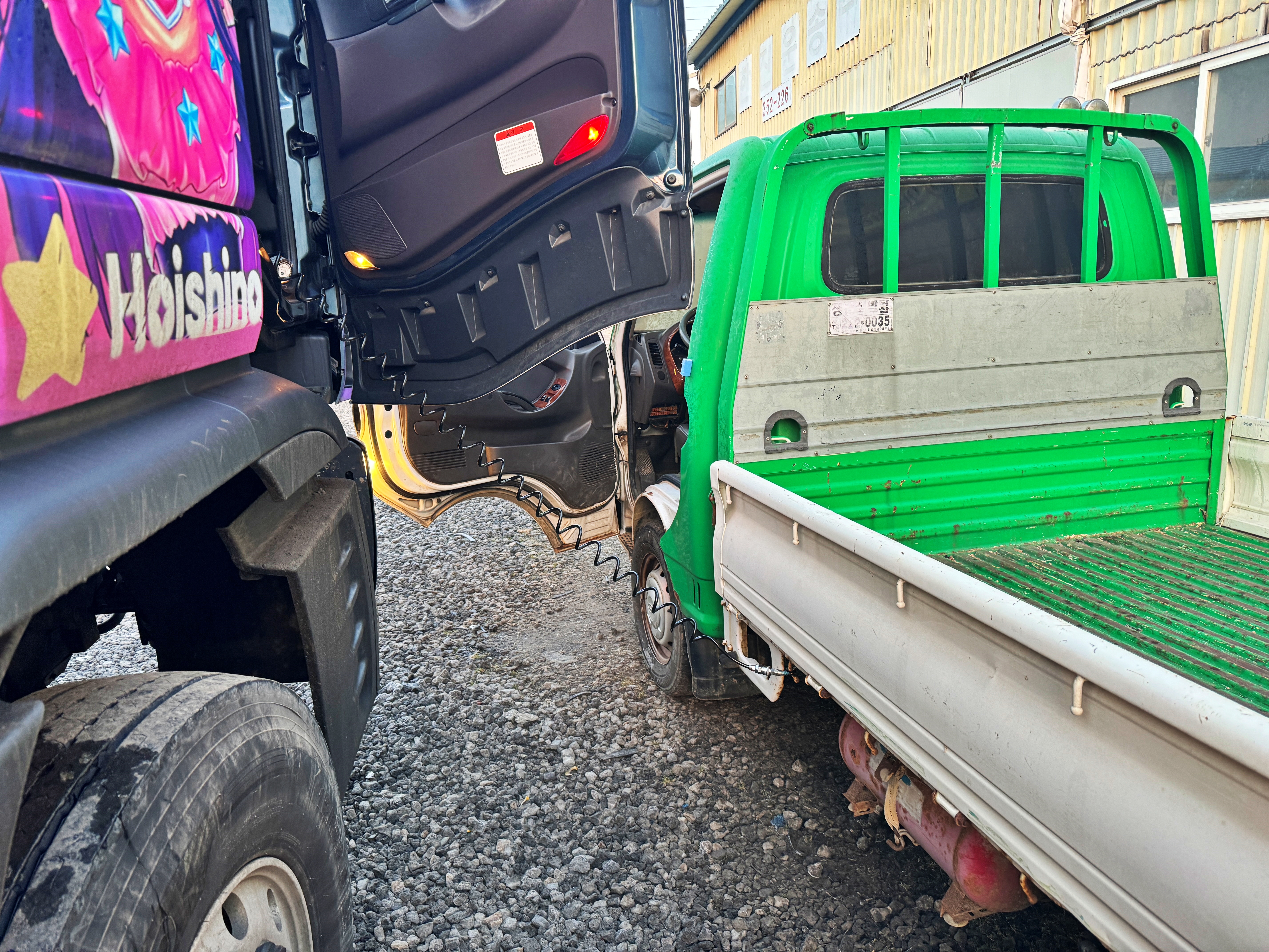 큰차에서 선을 연결하여 에어탱크를 충전합니다. 금방 채워지더군요. 경적을 눌러보니 저 옆에 대형 화물차보다 더 큽니다. 아 이거 쓰지 말아야겠습니다. 그래도 에어탱크가 있으니 그냥 에어선을 연결하여 에어건을 사용해도 되고 생각보다 활용할 부분이 많습니다. PTO만큼은 아니지만 다양한 용도로 활용이 가능하겠더군요.