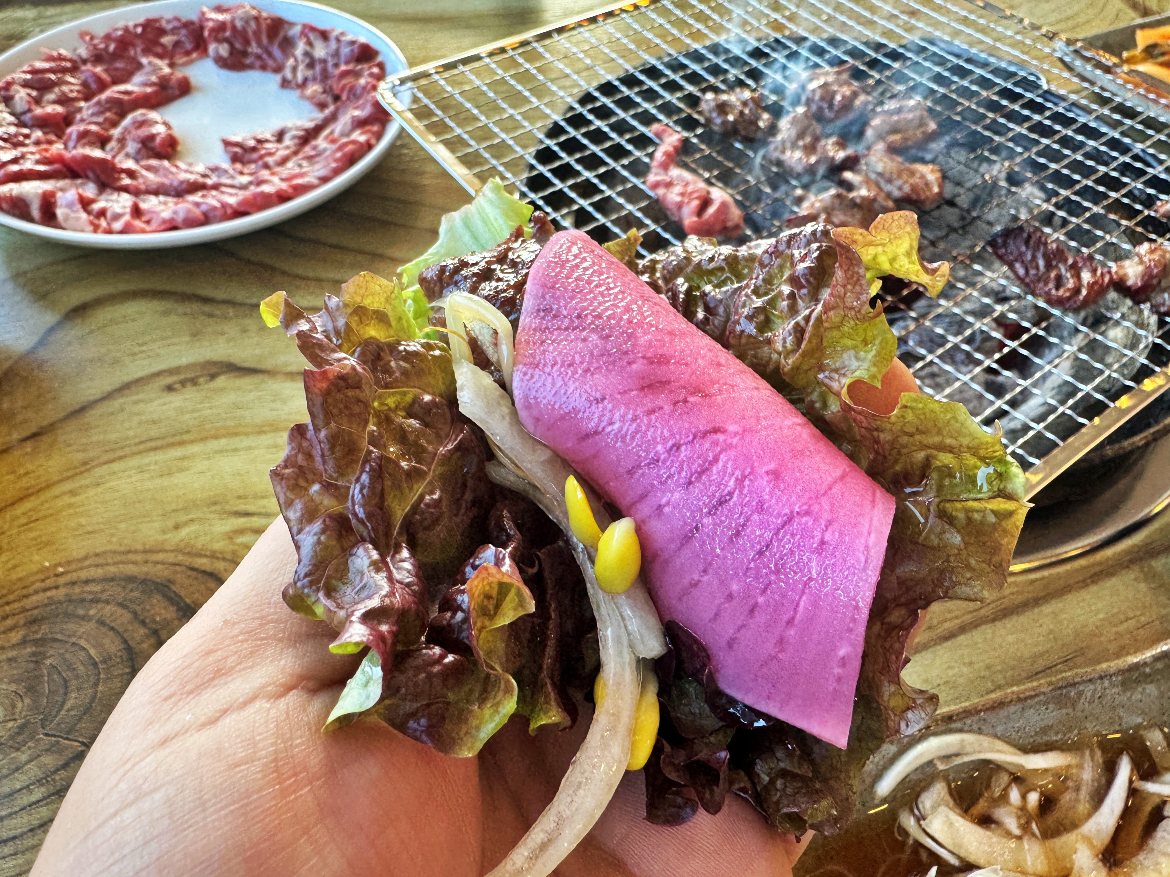 주변 테이블엔 2~4인 이상 앉아있습니다만, 고독한 도태남은 고독을 즐기며 혼자 고기를 굽고 있습니다.
