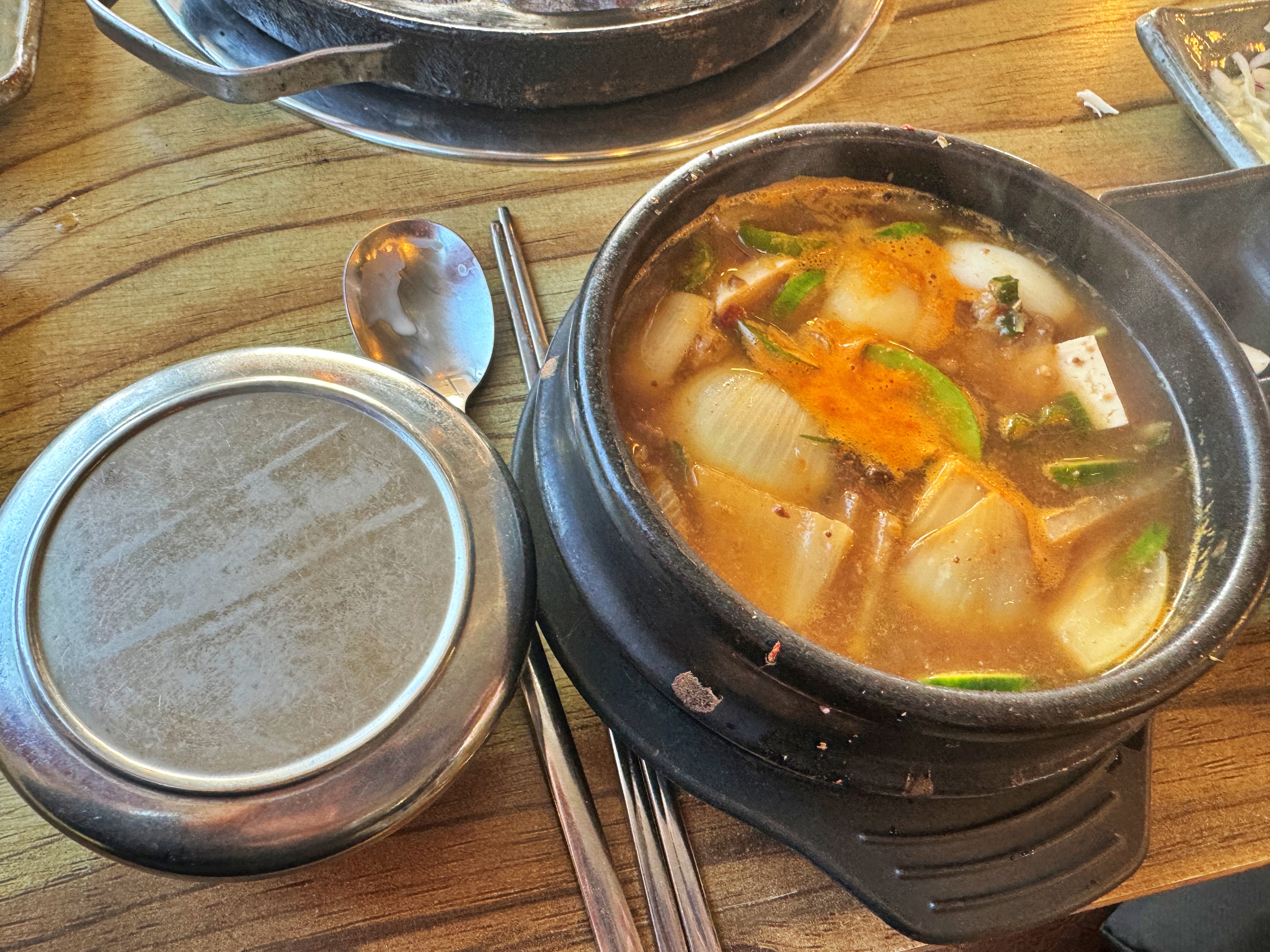 냉면이나 누룽지를 선호하시는 분들도 많은데 무조건 고깃집 후식은 밥에 된장찌개입니다. 된장찌개 맛은 그냥 평범했습니다.