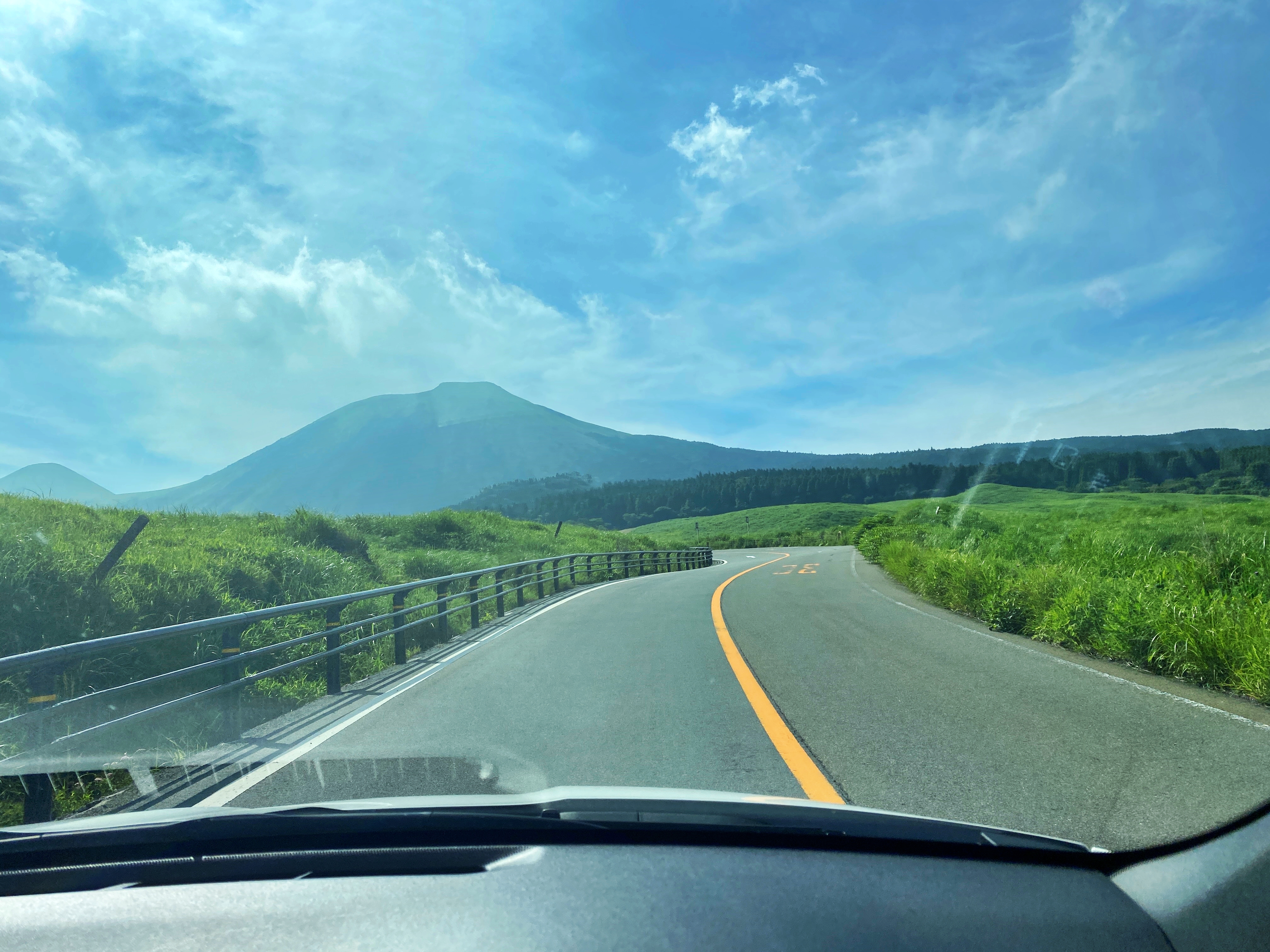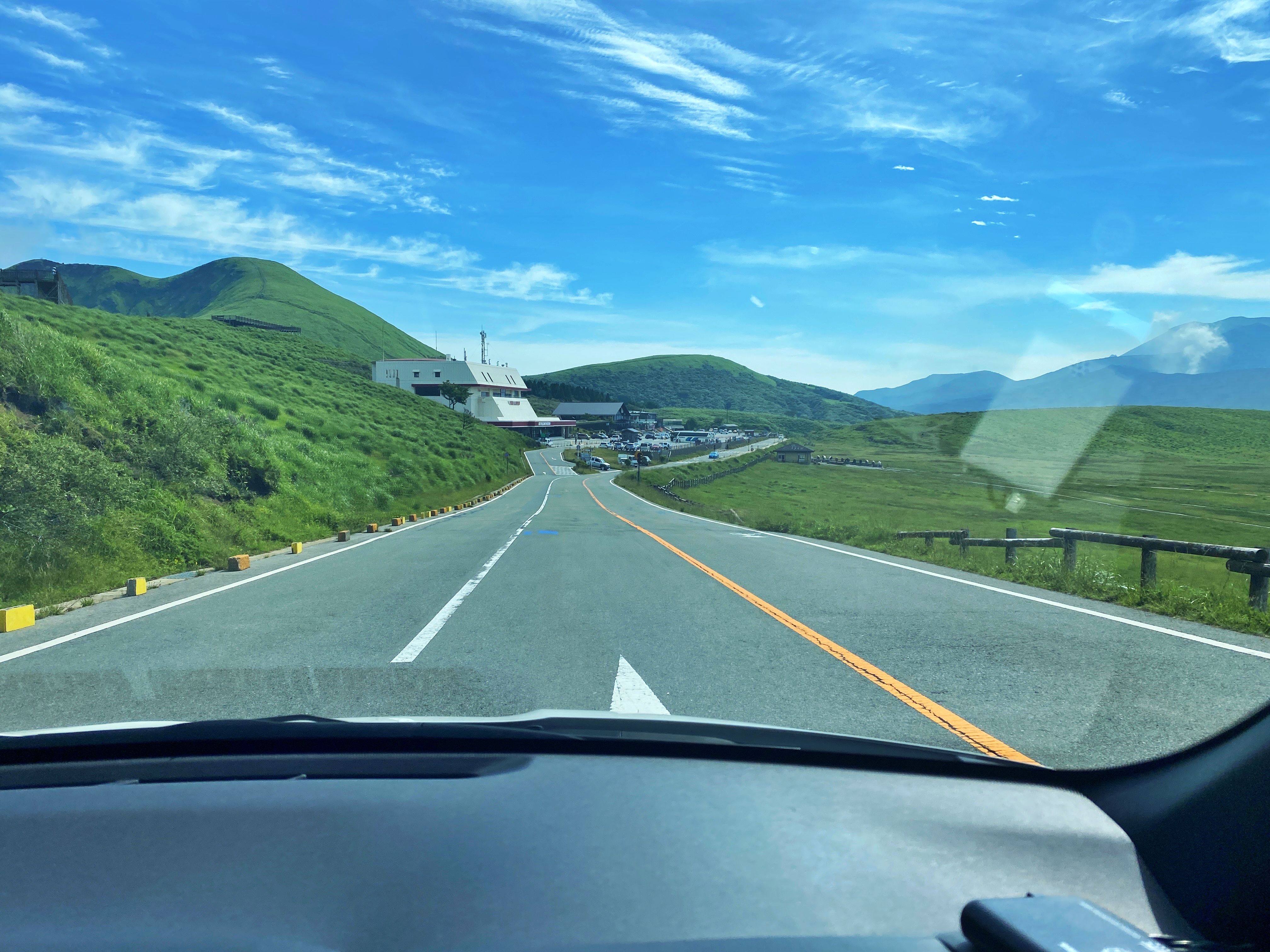 아소산 나카타케 분화구로 가는 길은 여러 루트가 있습니다. 그 중 서쪽 방향으로 산을 타고 올라가는 길을 택했습니다.