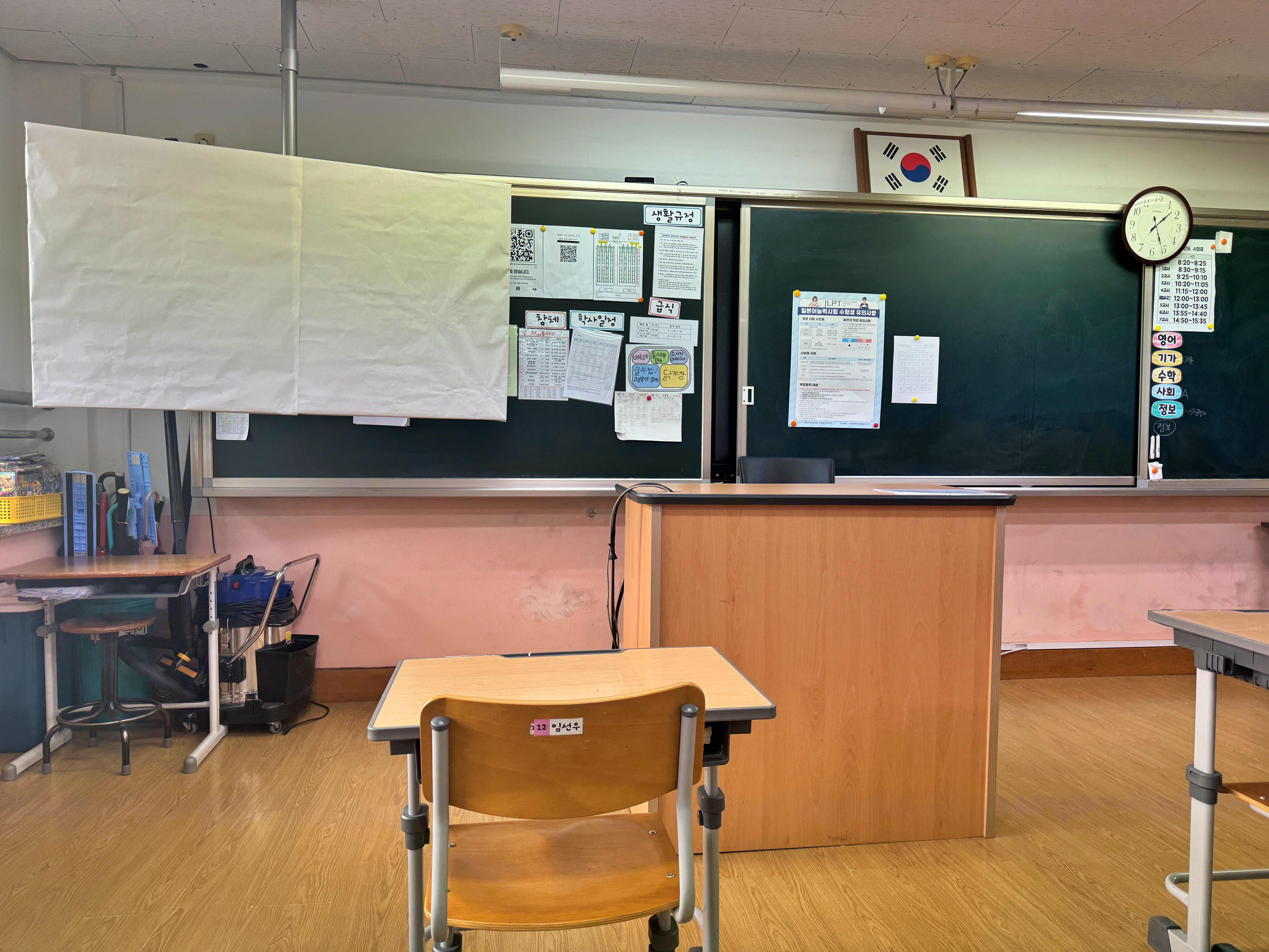 수험번호대로 4층의 한 시험실에 배정되었는데, 1학년 교실이었습니다.