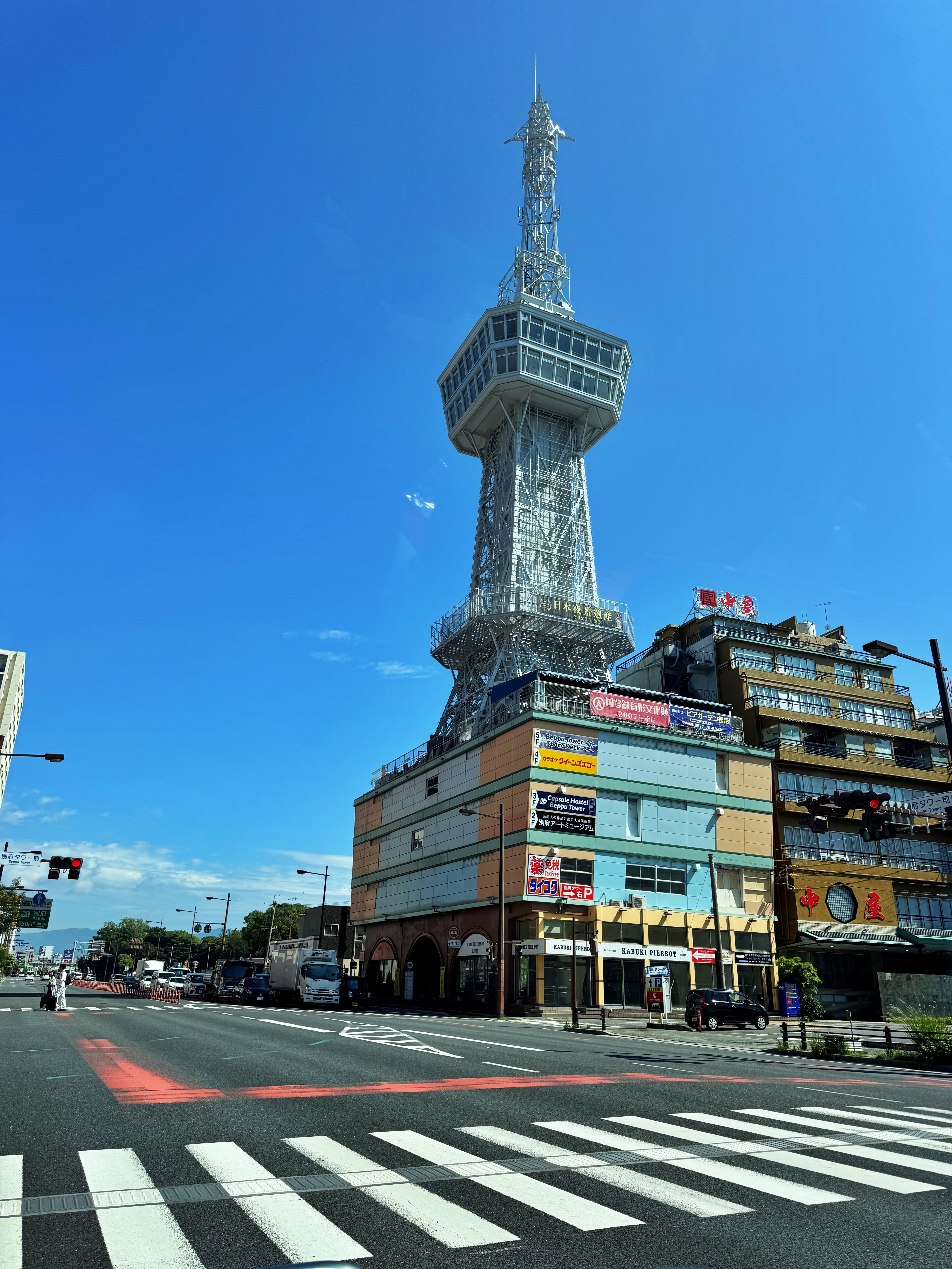 요즘 기준으로는 100m가 넘어가는 건물들이 많아 100m나 전망대가 있는 55m나 그리 높게 보이지 않습니다만, 이 타워가 건설되던 1956년만 하더라도 지역의 마천루 역할을 해냈었겠죠. 지금 살고 있는 아파트 20층의 높이가 타워 전망대보다 더 높으리라 생각되는데 벳푸시에 그리 높은 건물이 있지 않아 후기를 보니 타워 위에 올라가면 아기자기한 건물들이 보인다고 합니다.