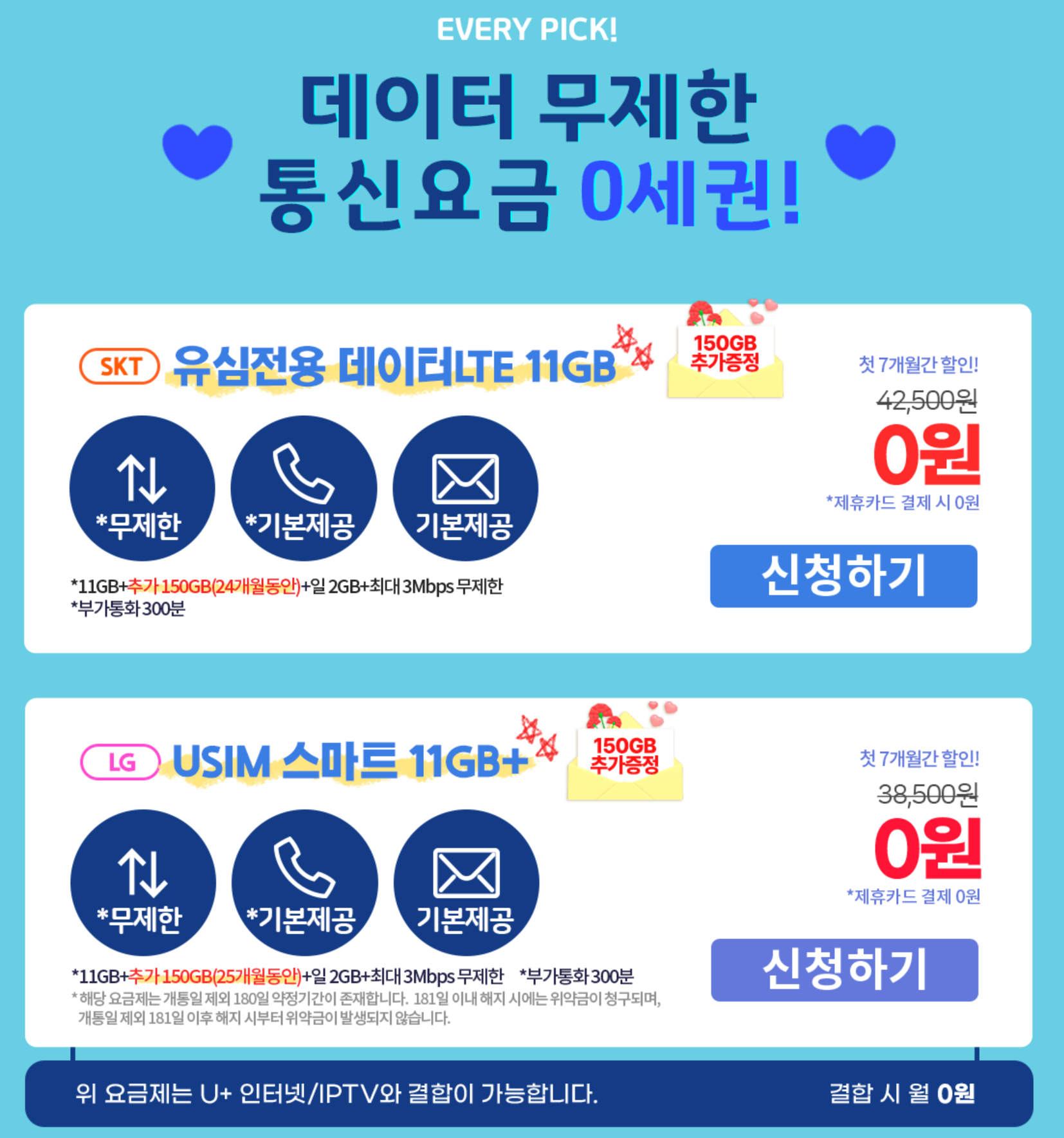 근데 LG망은 6개월 약정이 걸려있네요. 무료 기간이 지나갈 즈음에 메뚜기질을 하게 될지도 모르니 약정이 있어봐야 좋을 건 없습니다. 그래서 SKT 요금제로 신청하고, 다이소에서 판매하는 스마텔 USIM을 구매하기로 합니다.