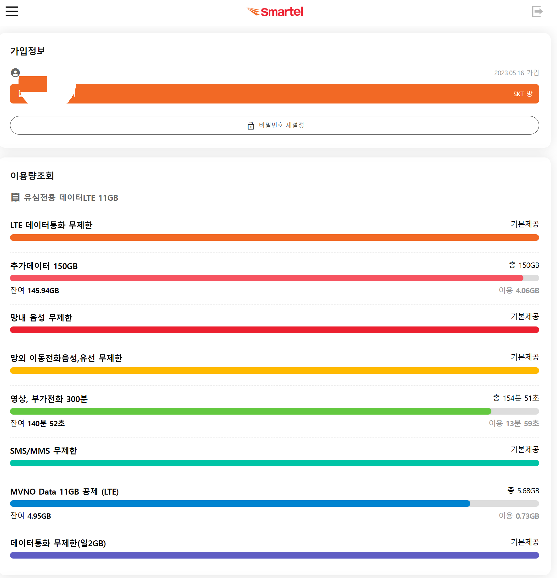 이번에는 메인으로 사용하는 회선도 7개월에 0원짜리 요금제로 넘어왔습니다.