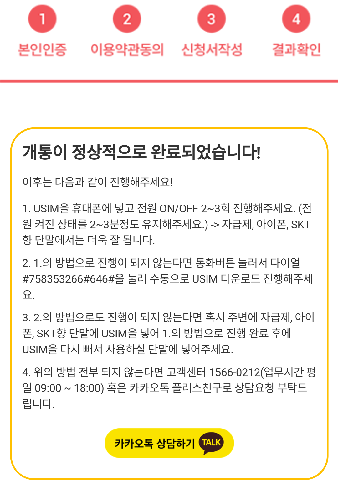 유심을 직접 구매하여 셀프개통으로 신청해도 되고, 택배로 받아도 됩니다.