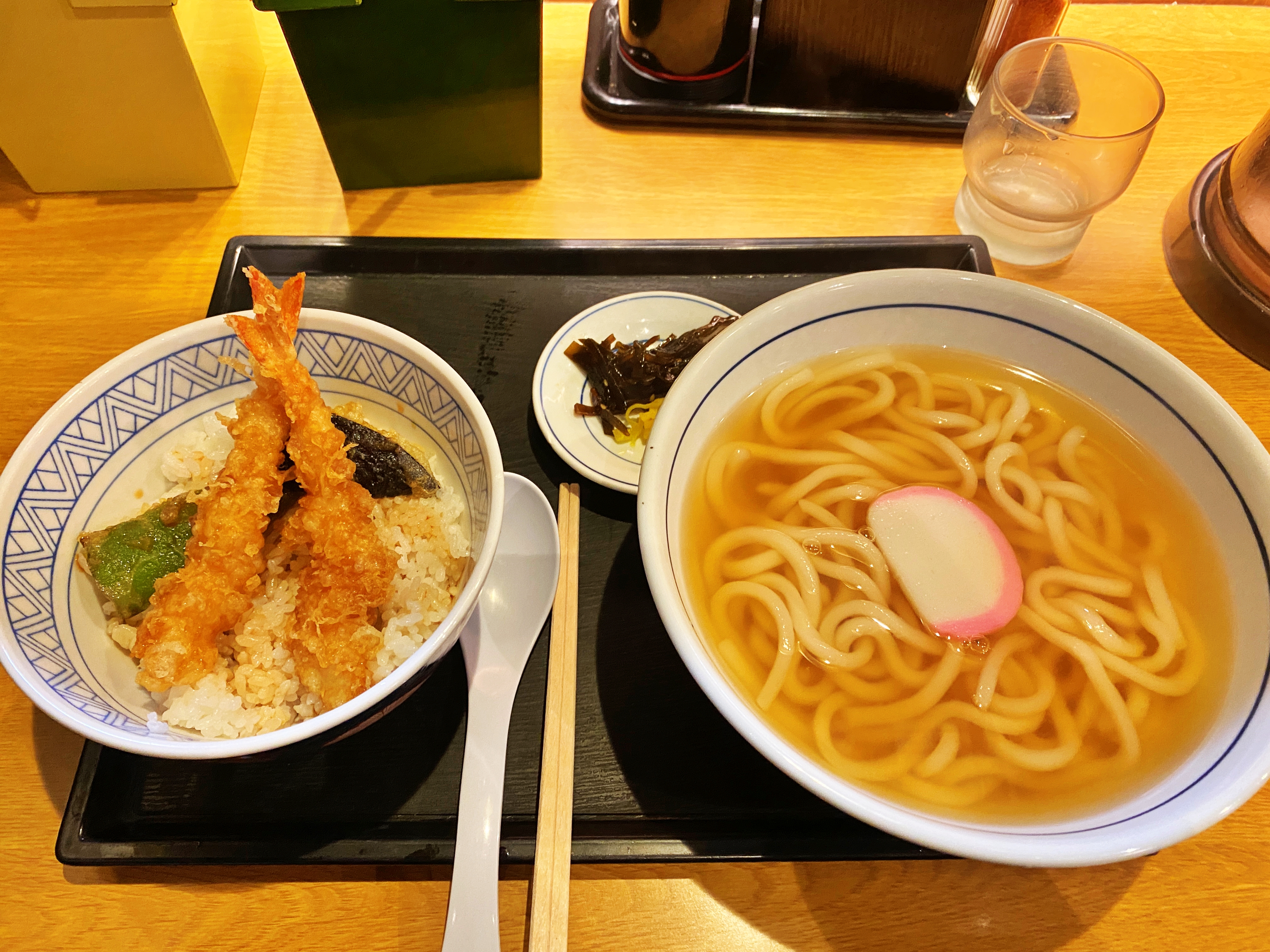 에비동(새우튀김덮밥)과 우동이 나왔습니다.