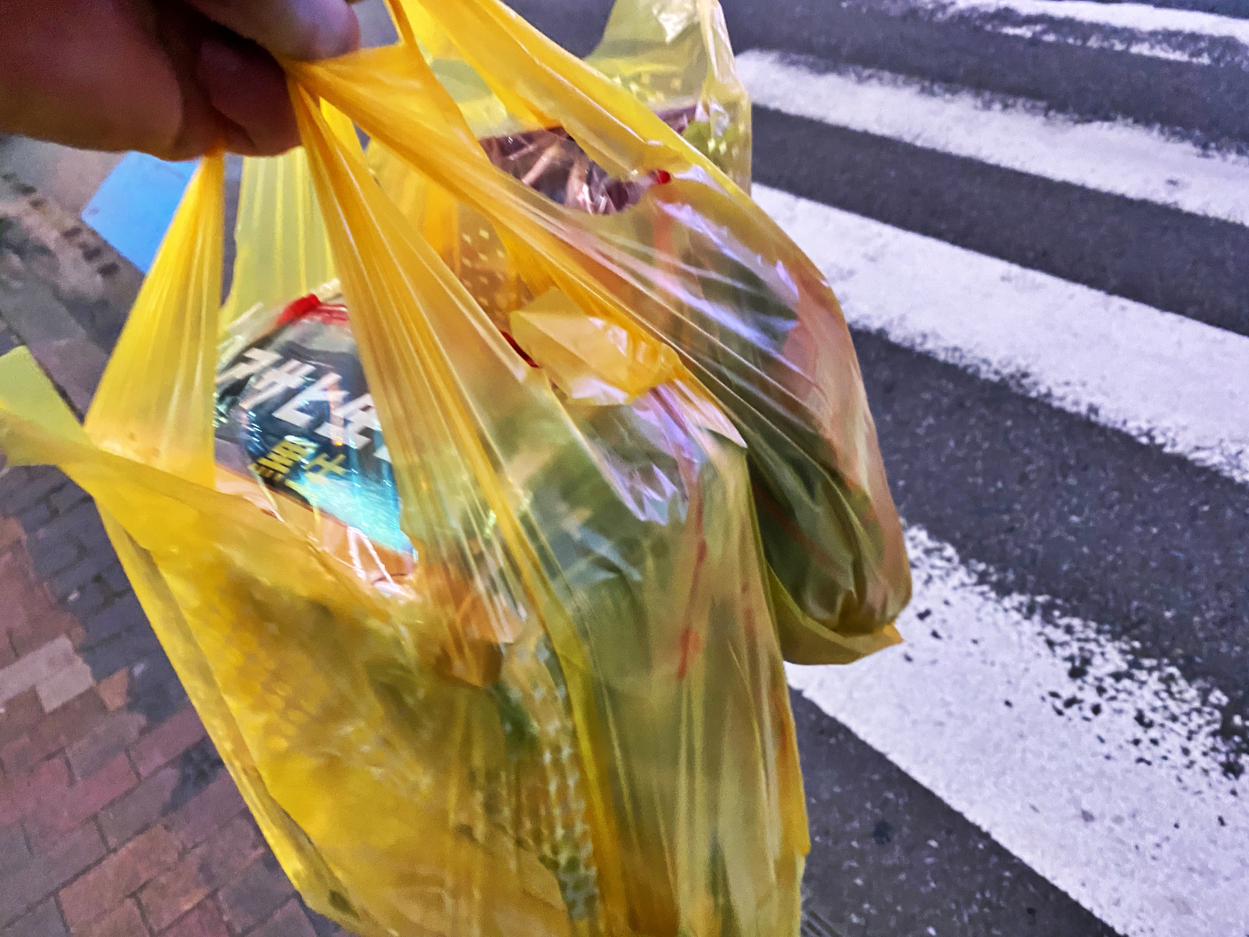 돈키호테에서 구매한 물건들을 담은 봉투를 들고 숙소로 돌아옵니다.