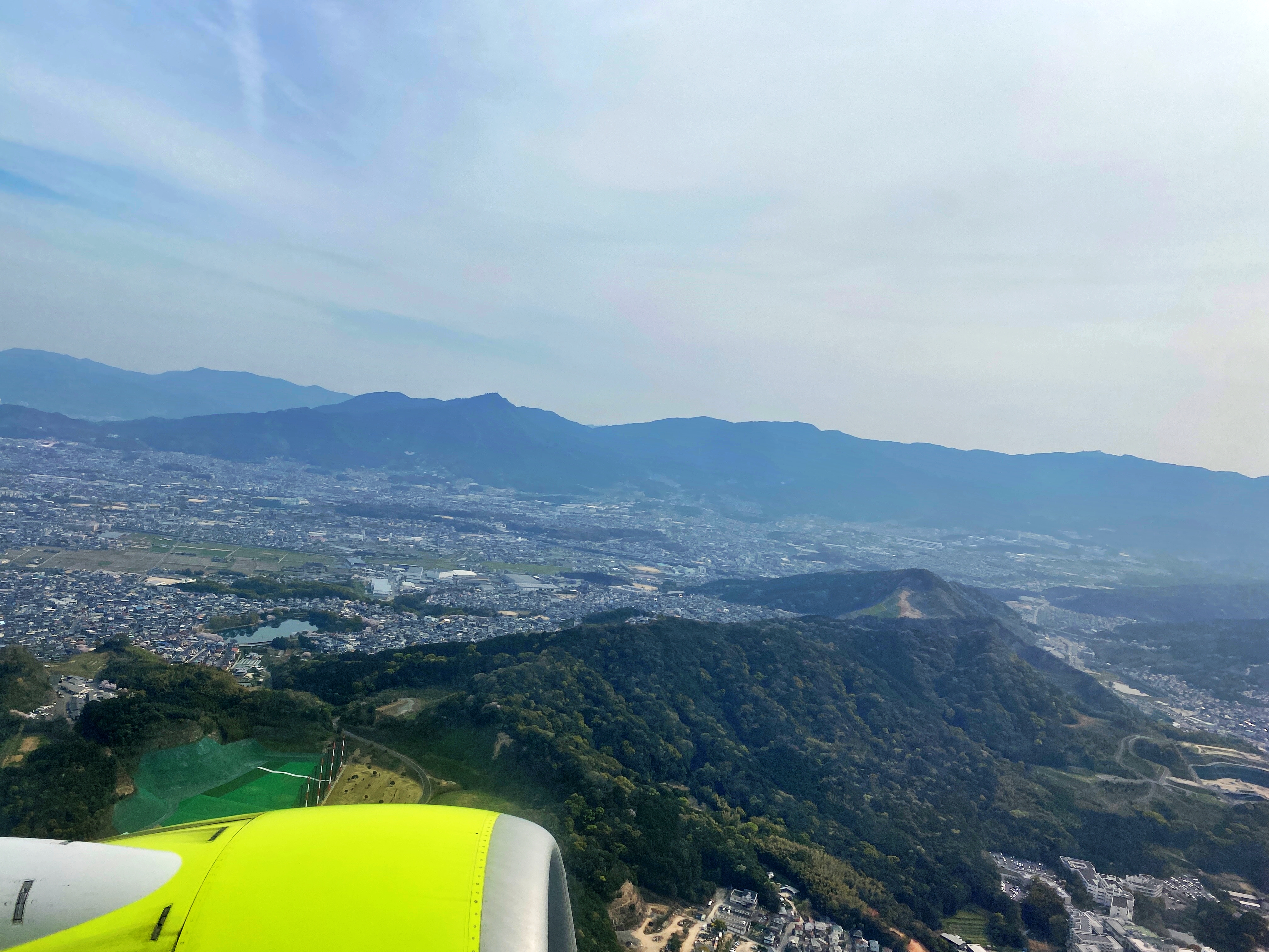 큰 비행기를 타고 왔다가 작은 비행기를 타고 후쿠오카를 떠납니다.