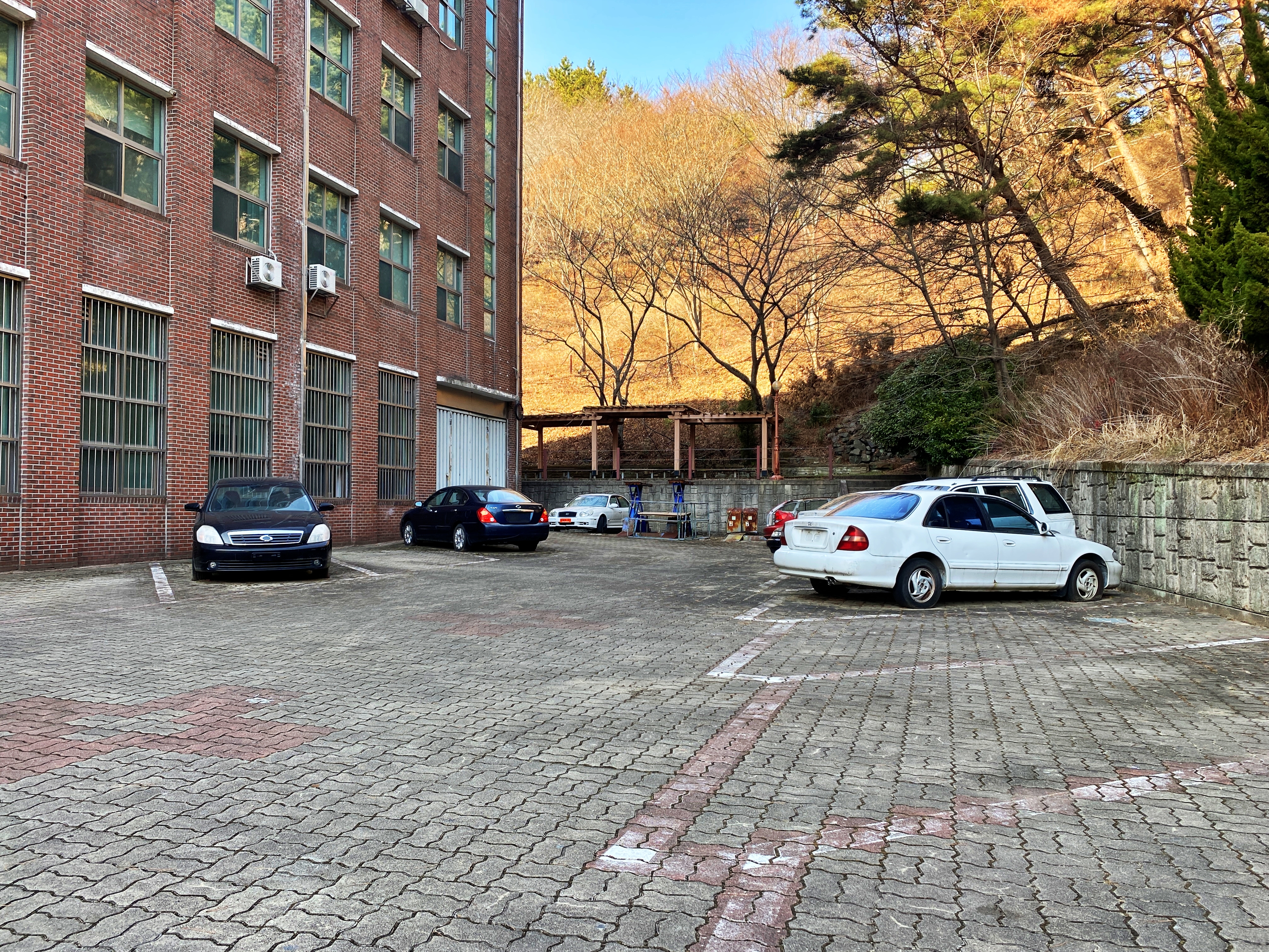 수송공학관 뒷편으로는 실습용 자동차의 모습이 보입니다.