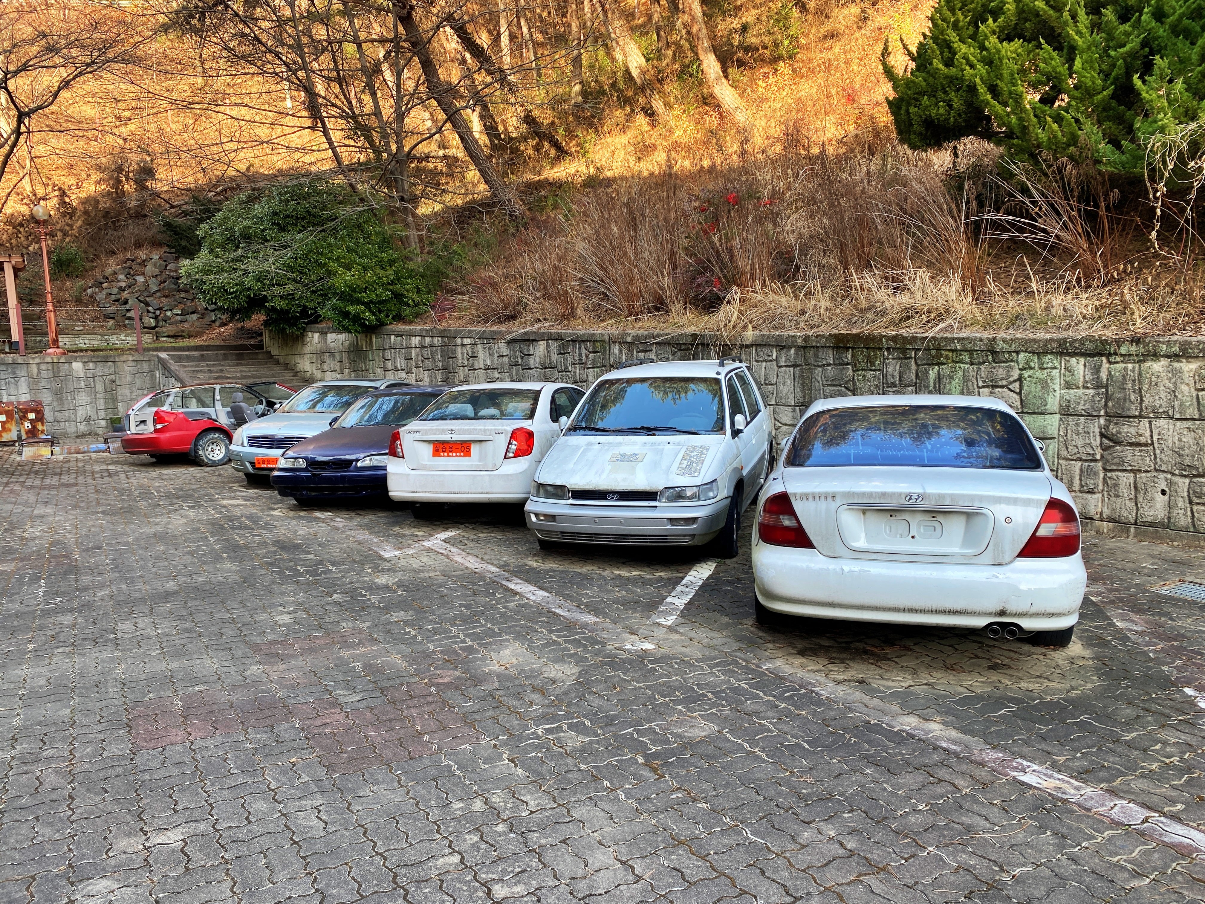 탐방이 아닌 올드카 목격담 카테고리가 더 어울리는 사진들입니다. 상대적으로 최근 차량이라고 해봐야 2000년대 중반에 생산되었던 닛산 티아나 기반의 구형 SM7과 SM5. 라세티 정도가 아닐까 생각됩니다. 그 외에는 소나타 2,3 싼타모 리오 같은 90년대 차량들입니다.