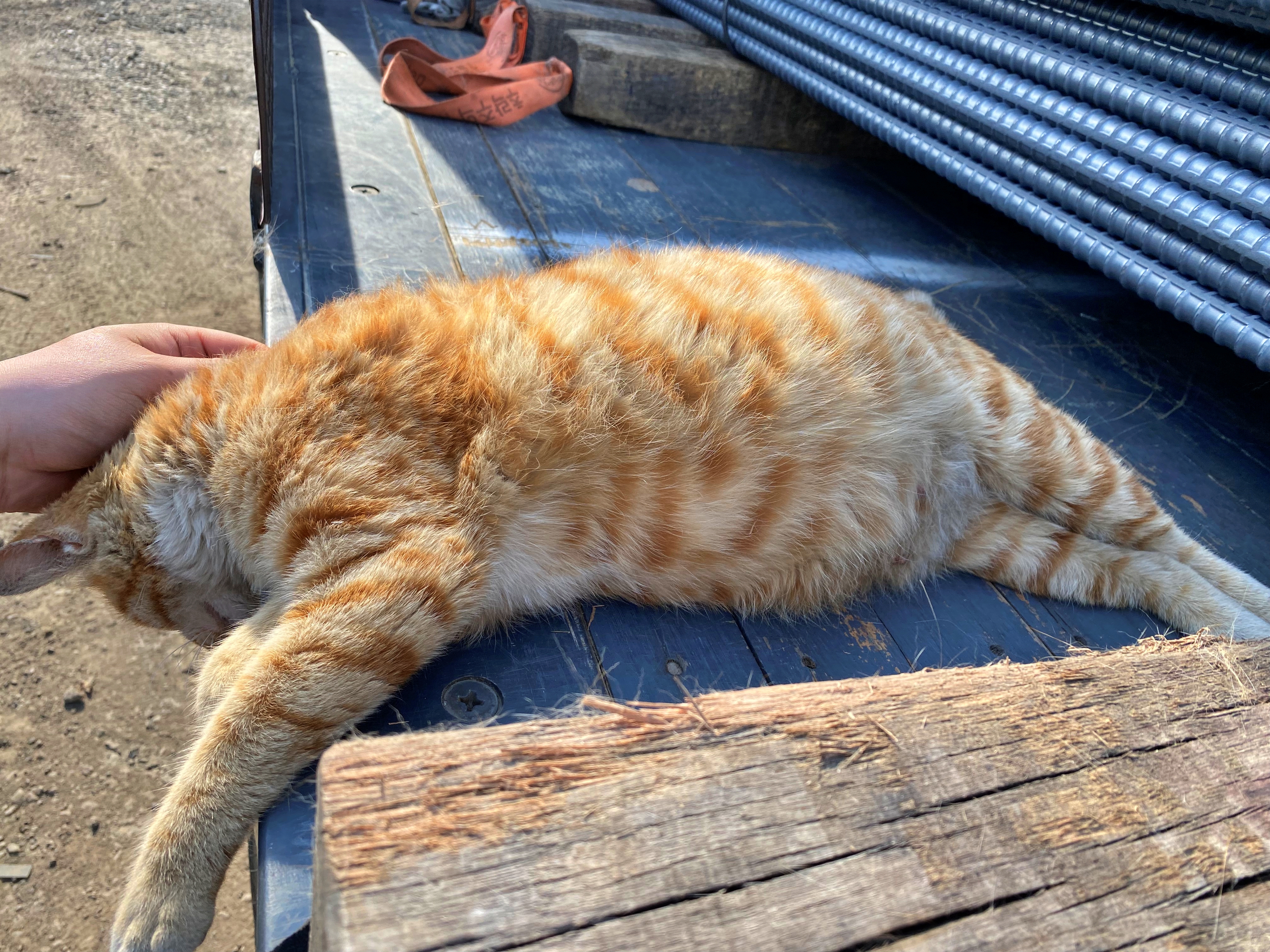 고양이의 임신 기간은 대략 9주. 한 눈에 봐도 고양이의 배가 불러온 모습이 보입니다. 작은 체구에 배가 불러오니 당연히 사람들은 너무 먹어서 살이 붙는다고 생각했겠죠. 지난주 즈음부터 배에 젖꼭지가 만져지기 시작했고, 그렇게 임신을 확신했습니다.
