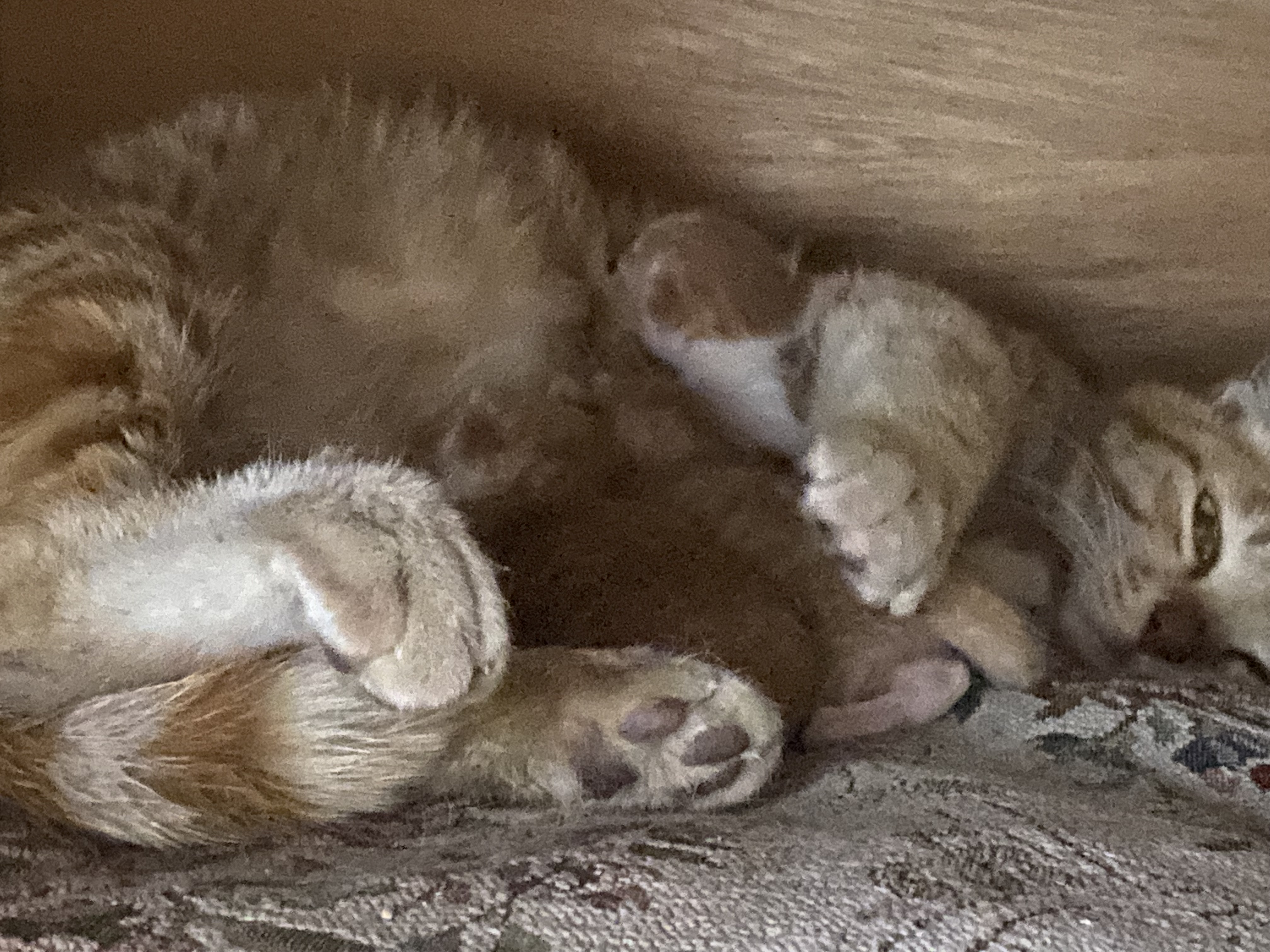 다 어미랑 비슷한 치즈태비 고양이입니다. 네마리 중 한마리만 흰색이 좀 많이 섞여있네요. 주로 수컷이 많다고 하는 치즈태비 고양이인데 암컷이고, 새끼들도 다 치즈태비입니다. 아마 일주일정도 지나면 지금보다 안정화될테고 새끼들도 눈을 뜨고 돌아다닐테니 그 즈음에 새끼들 성별도 제대로 확인해보던지 해야겠네요.