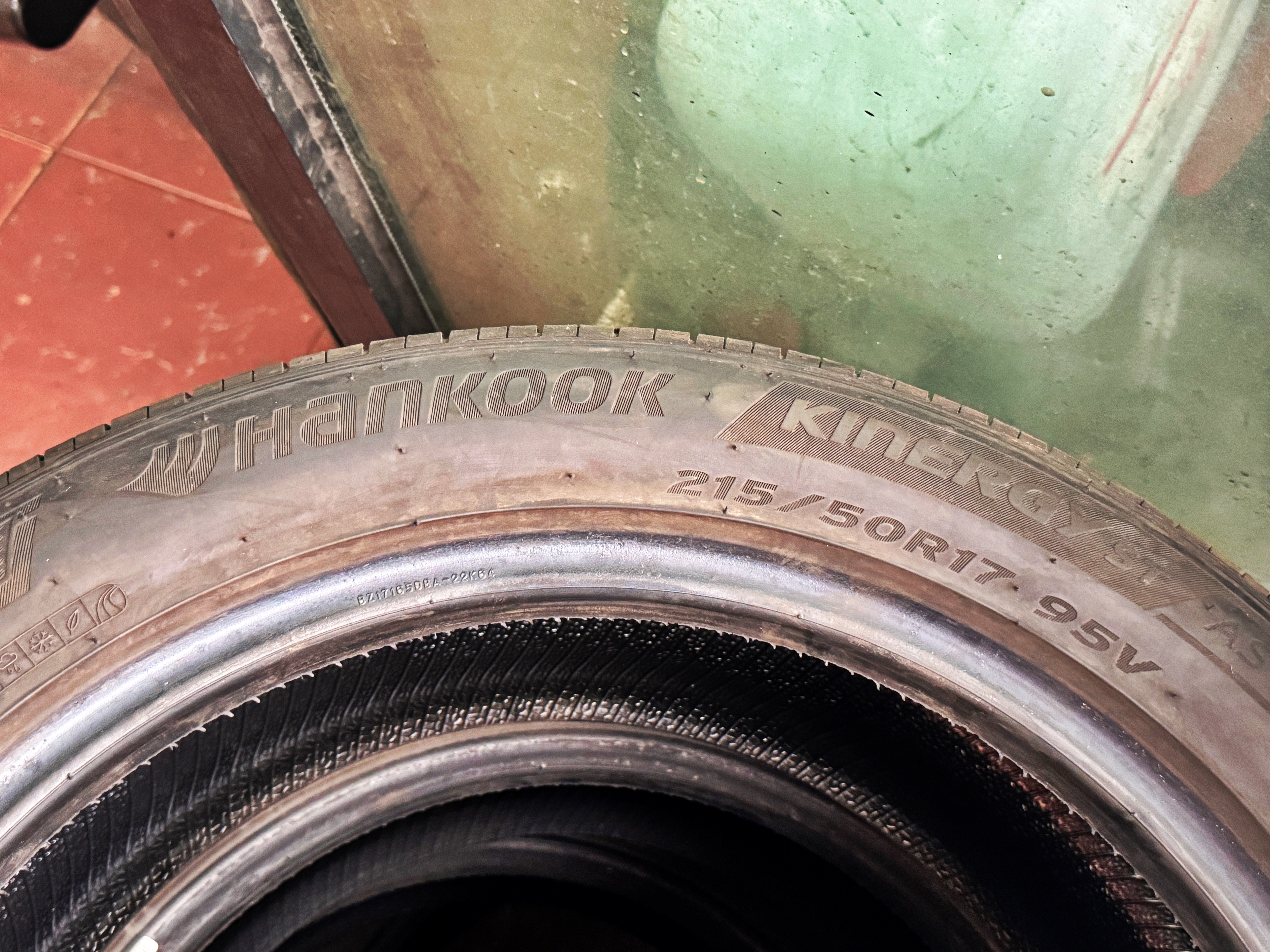 예전에 사용해 본바 만족스러웠던 키너지 EX의 후속모델 격 되는 제품이라고 합니다. 14인치부터 19인치까지 다양한 사이즈가 구비되어 있고, 215/50R17의 경우 삼성차나 대우차의 17인치 휠이 장착되는 차량에 주로 끼워지는 사이즈라고 하더군요. 왜 이제 겨우 1년이 지난 이 새 타이어가 중고타이어 가게로 들어오게 되었는지 자세한 사정은 알 수 없어도 제 입장에서는 득템을 하게 된 상황입니다.