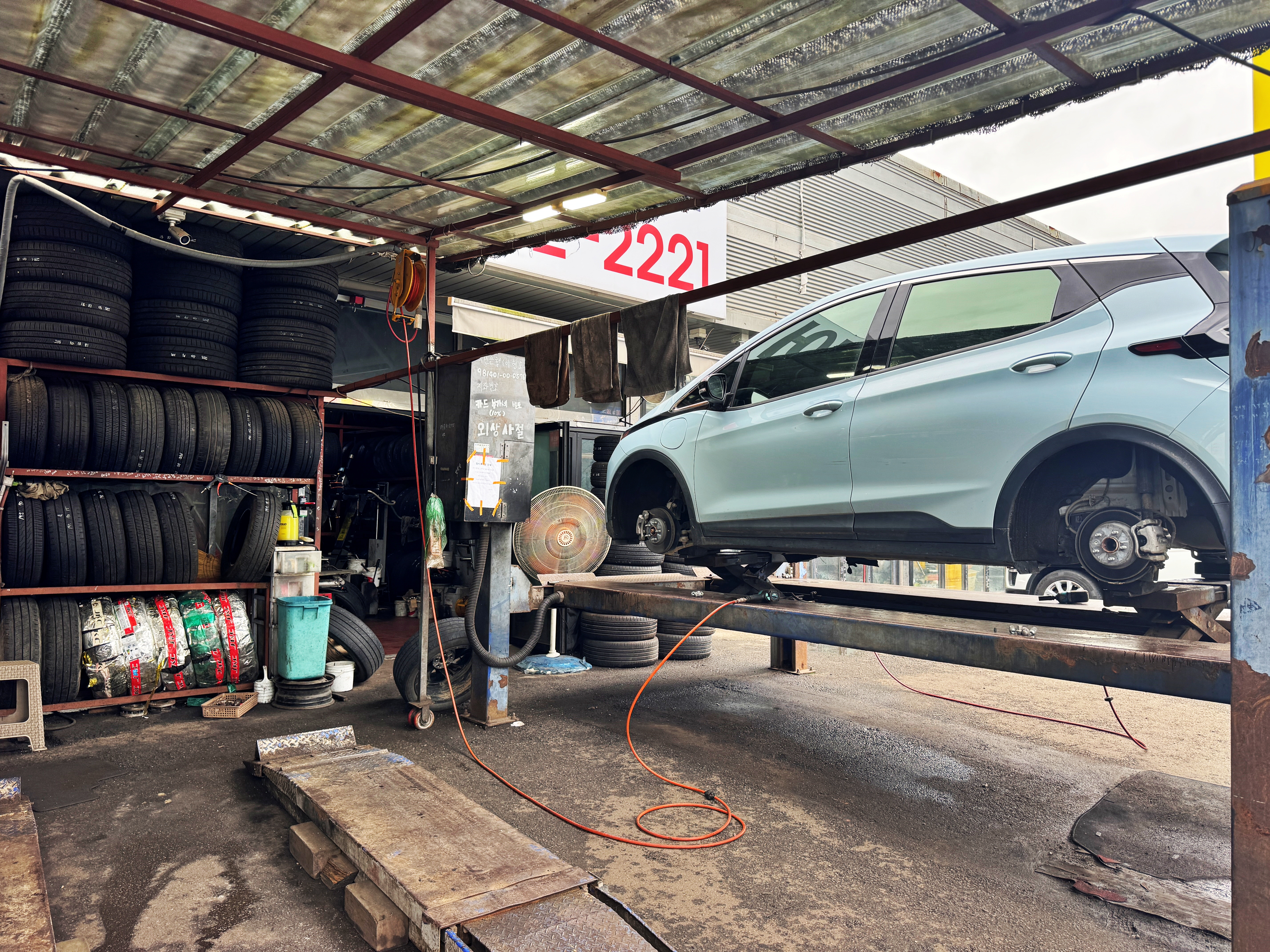 그래서 타이어를 교체하러 왔습니다. 우리 이재명 총통님께서 하사하시는 민생지원금이 나오면 바꾸러 가야겠다고 생각하고 있었습니다만, 그 전에 예상보다 빠른 속도로 타이어가 다 닳아버렸더군요. 그래서 비스토동호회 전 카페지기님께서 주말에 알바를 하고 계신 중고타이어 가게에서 저렴하게 교체했습니다.
