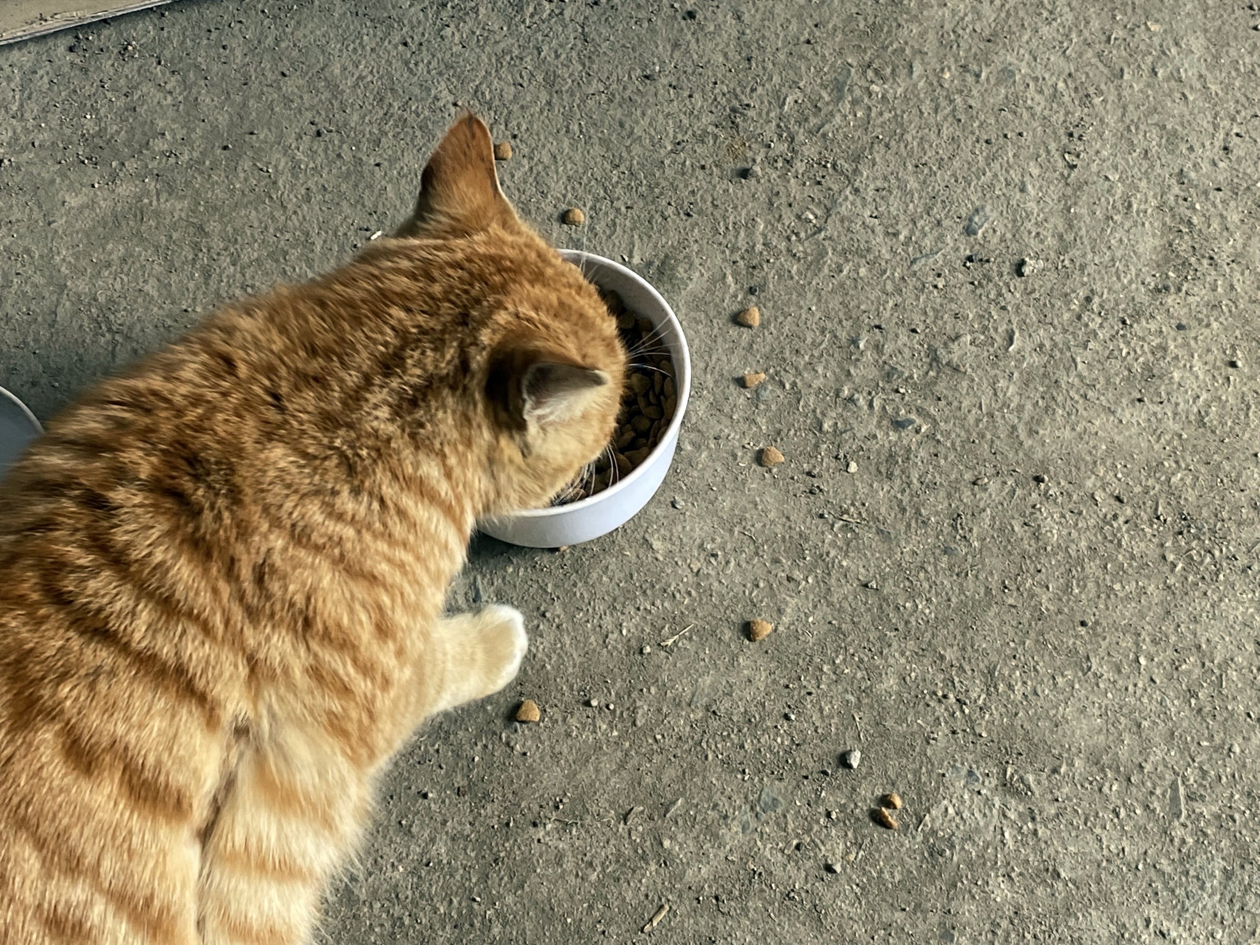 이 불쌍한 고양이 가뜩이나 큰 고양이들에 치여 잘 먹지도 못하고 그나마 사람들이 주는 사료로 연명하고 사는데 일주일간 밥을 줄 사람들도 나오지 않으면 그냥 굶겠거니 싶어 나와서 밥을 줬습니다.